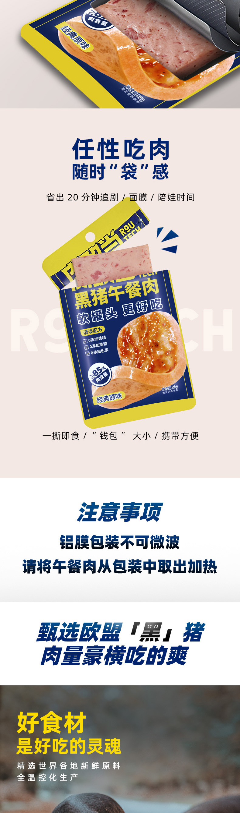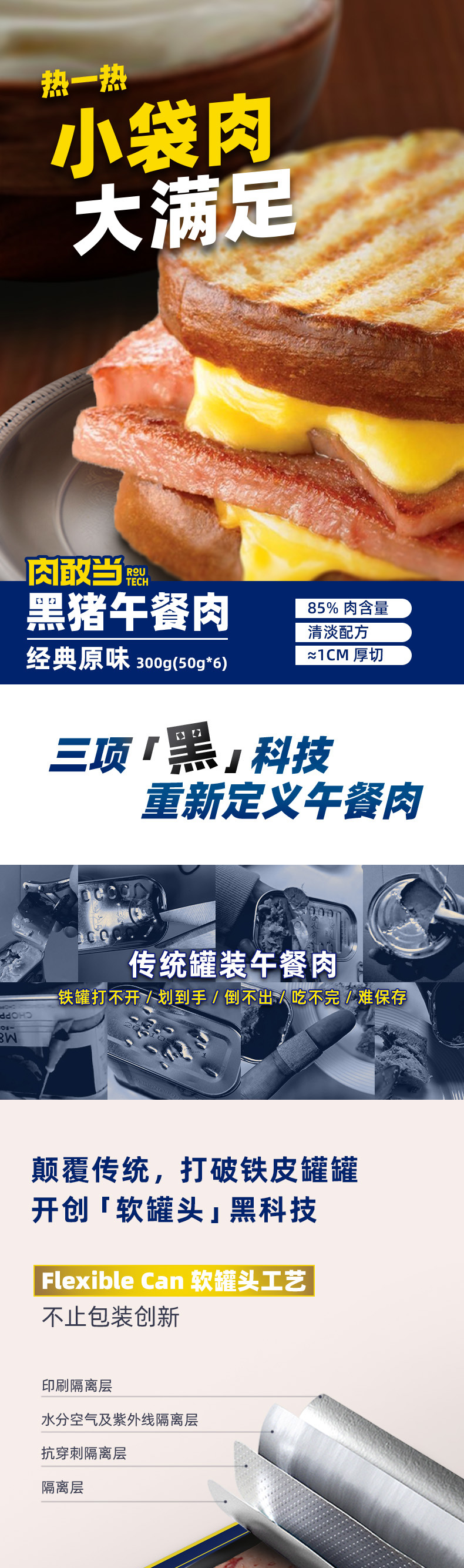 商品名称:肉敢当黑猪午餐肉片-经典原味300g