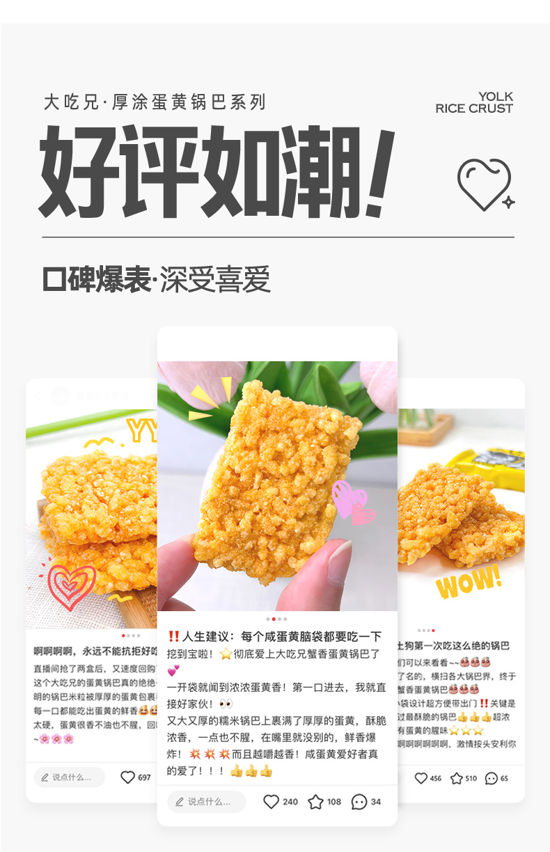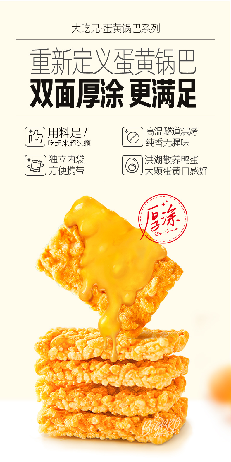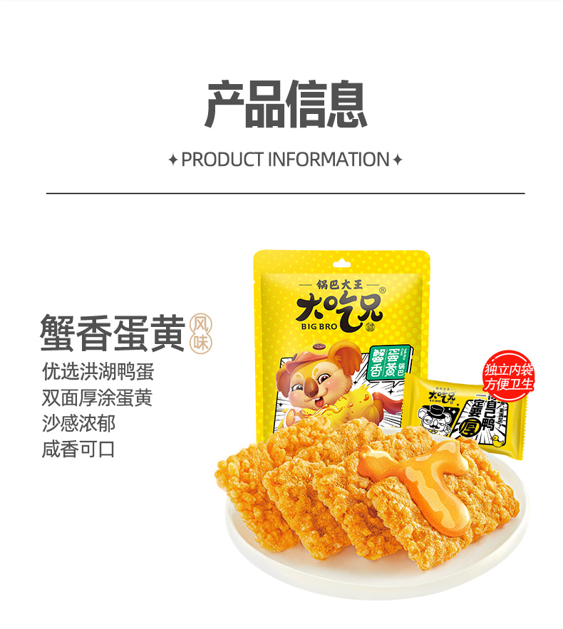 商品名称:BIG BRO/大吃兄蛋黄锅巴蟹香蛋黄味152g*2袋