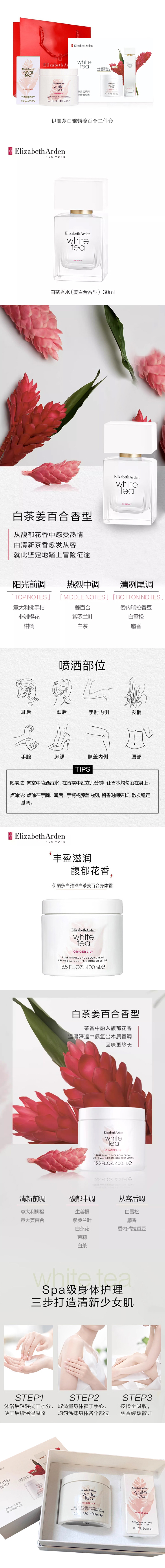 商品名称:Elizabeth Arden/伊丽莎白雅顿白茶姜百合香水身体霜两件套礼盒