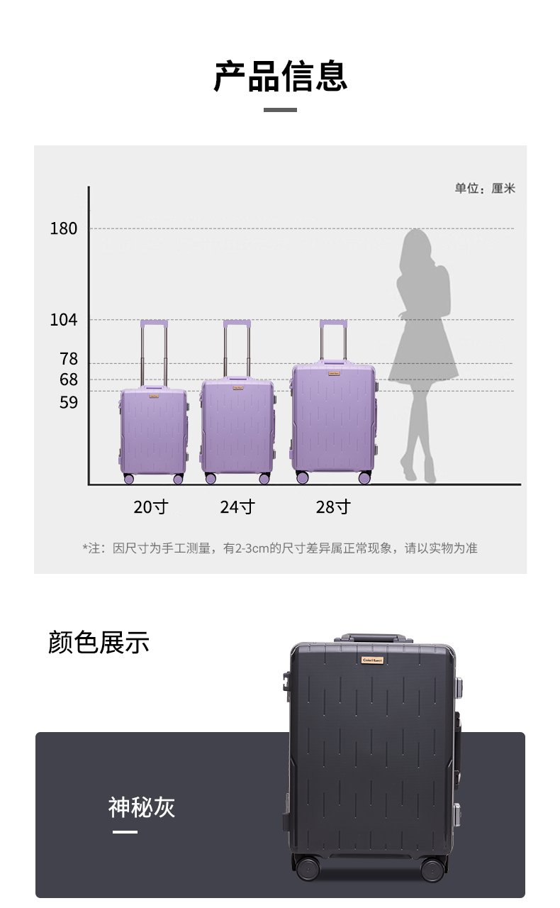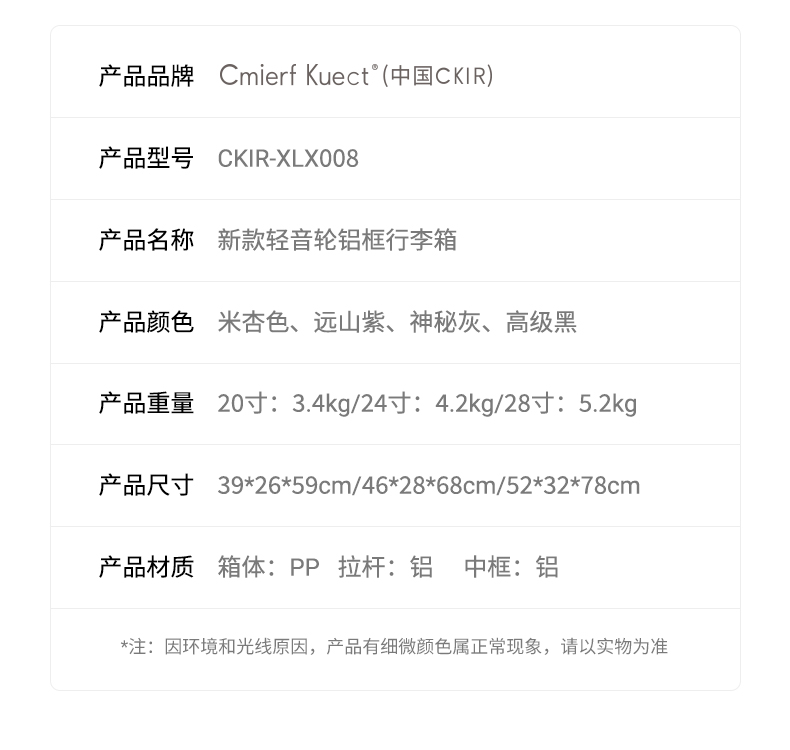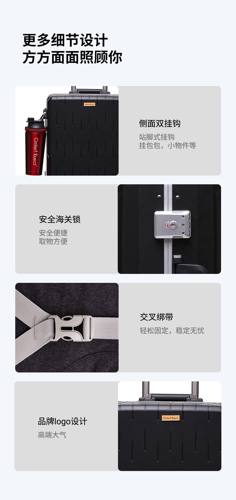 商品名称:Cmierf Kuect/中国CK新款静音轮铝框行李箱CKIR-XLX008