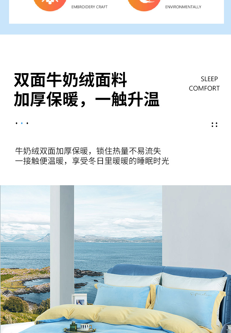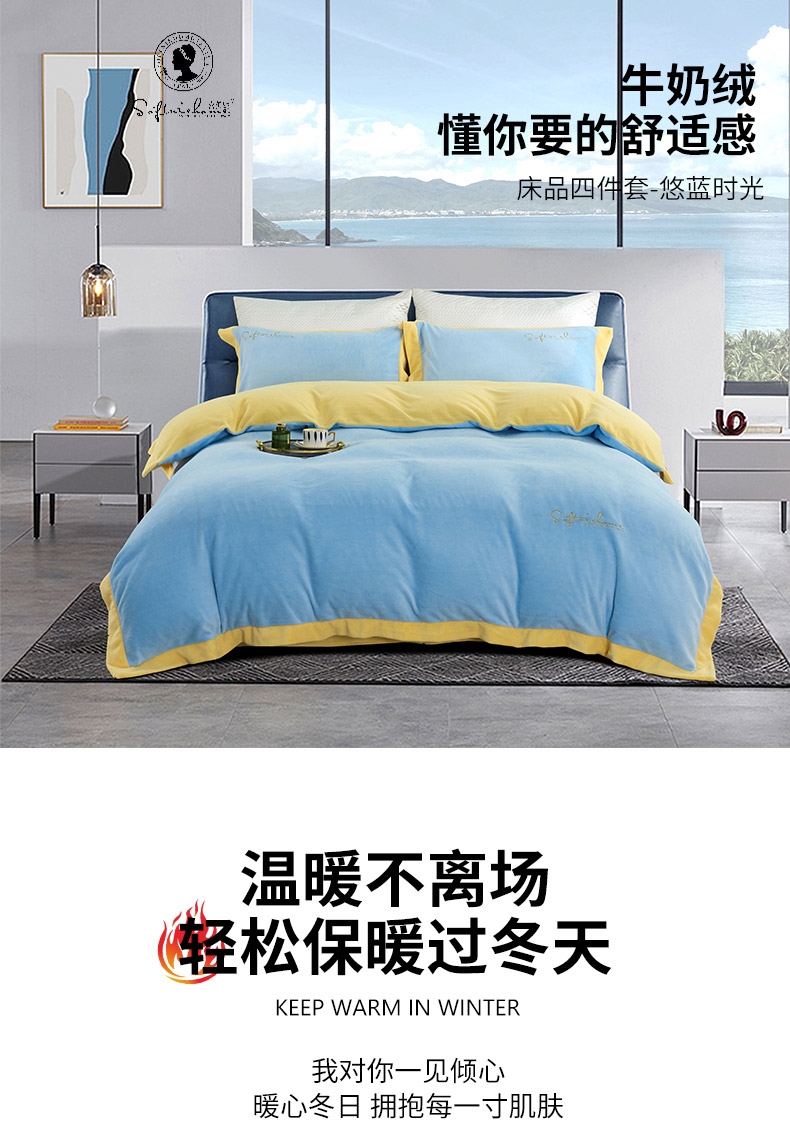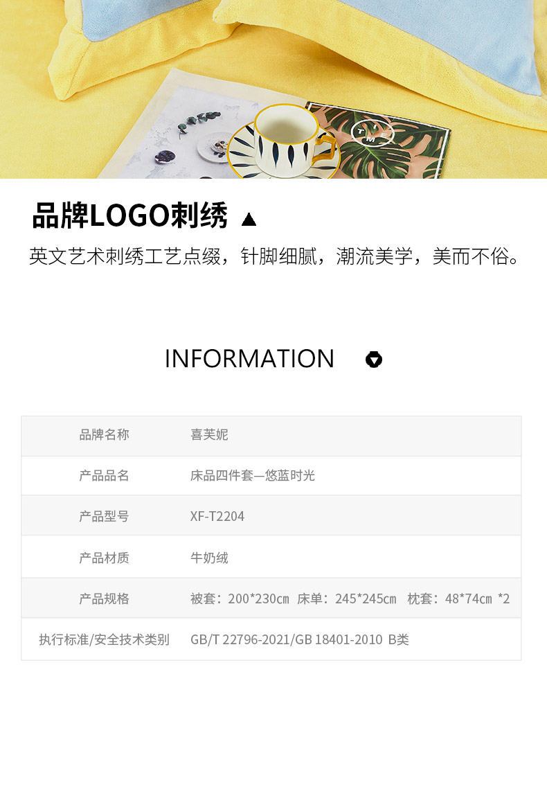 喜芙妮悠蓝时光牛奶绒床品四件套200*230cm
