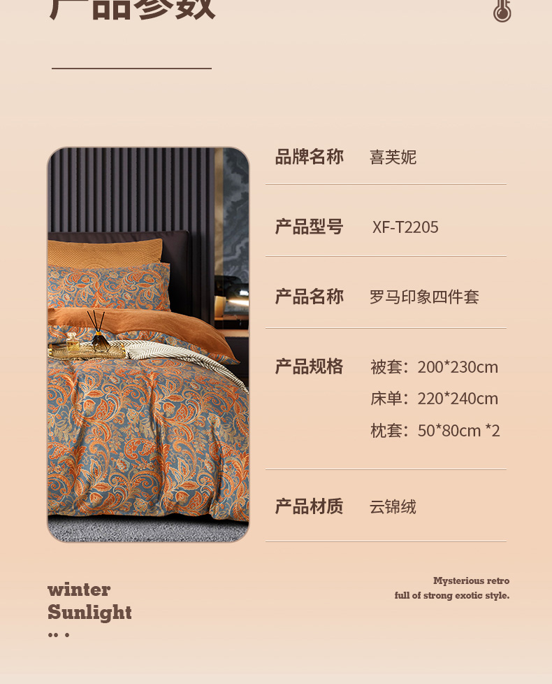 商品名称:喜芙妮罗马印象云锦绒床品四件套200*230cm