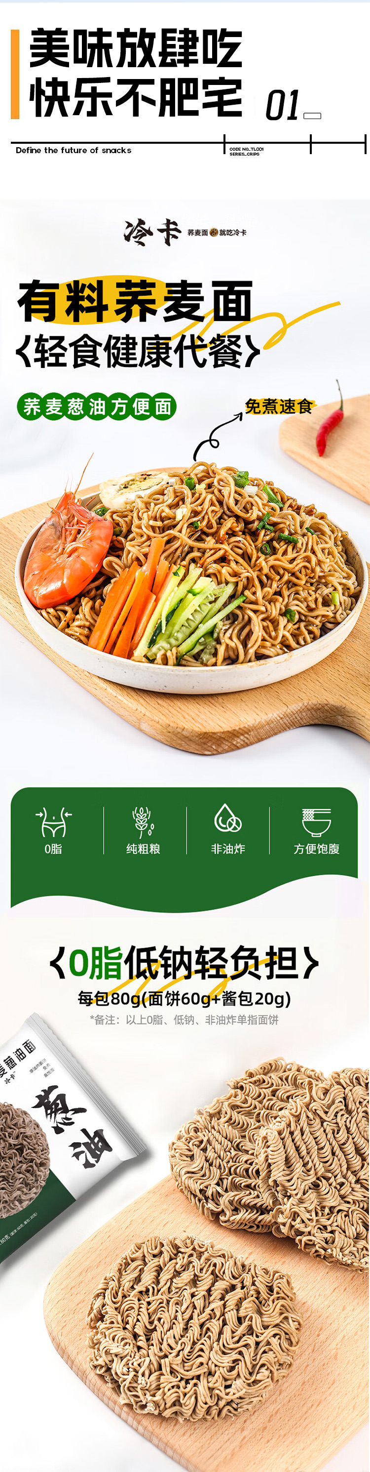 冷卡0脂荞麦面荞麦葱油面组合15袋