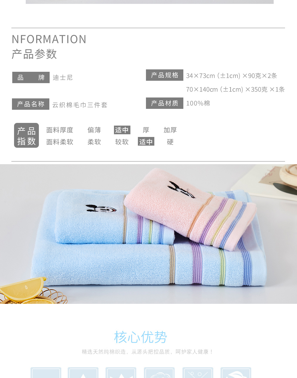 商品名称:DISNEY/迪士尼云织棉毛巾三件套DCM-3473T3