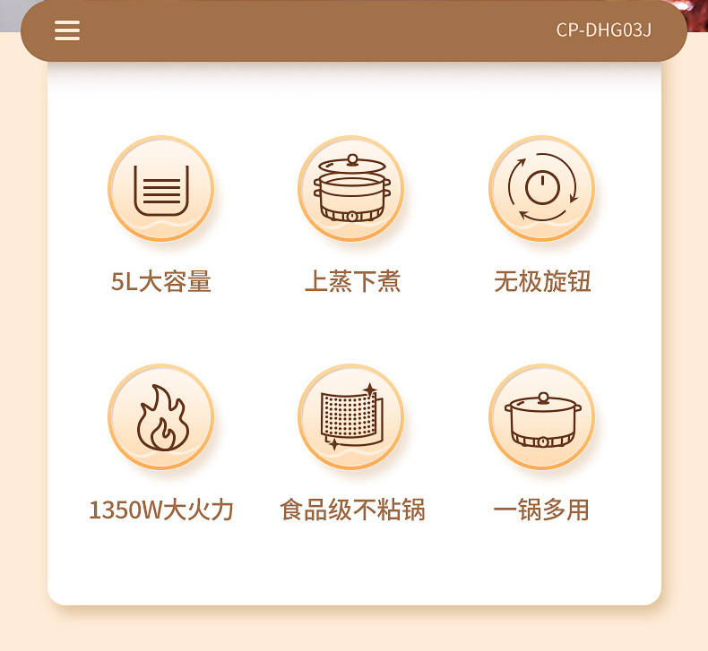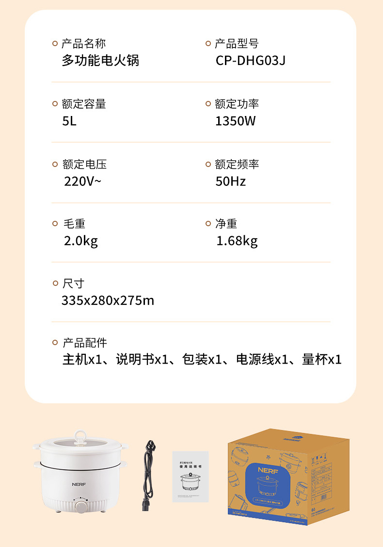 商品名称:NERF/拉尔弗5升多功能电火锅CP-DHG03J