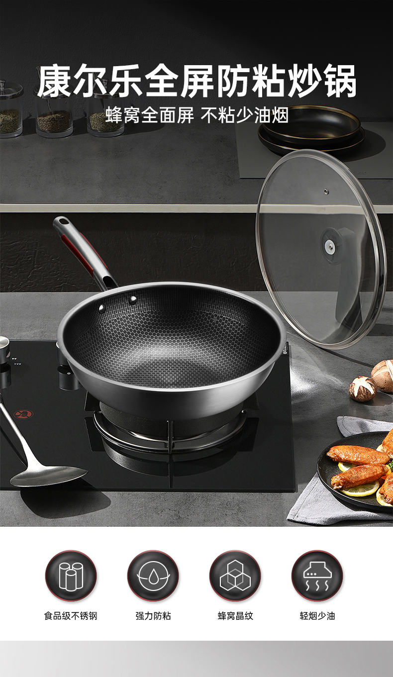 hanle/翰乐炊腾32cm康尔乐全屏防粘炒锅CT-KEL18