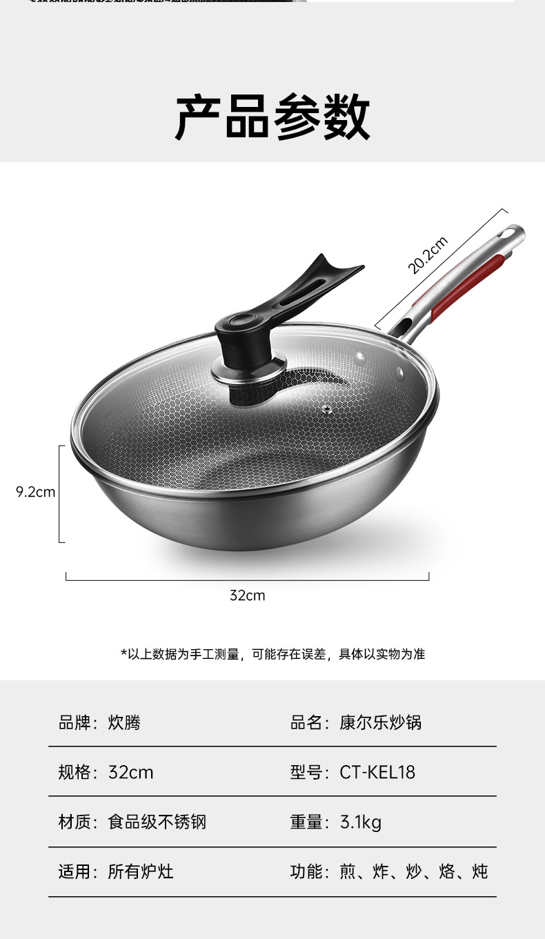 商品名称:hanle/翰乐炊腾32cm康尔乐全屏防粘炒锅CT-KEL18