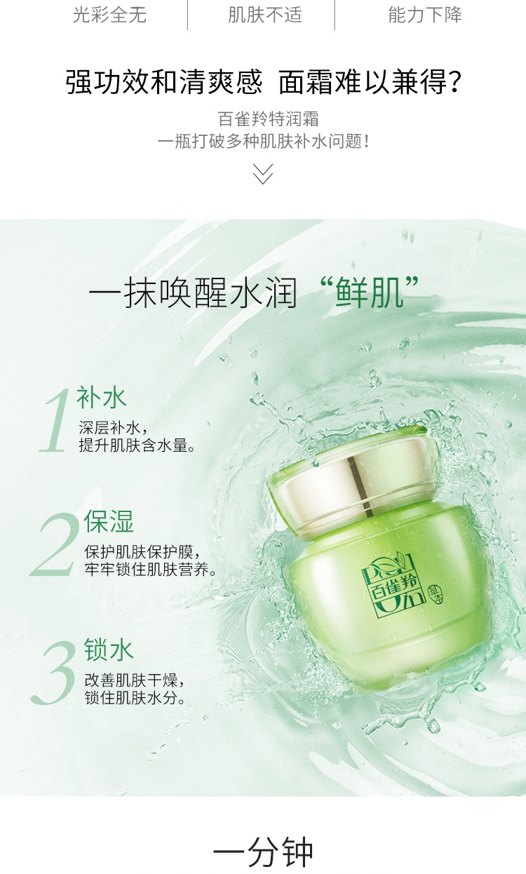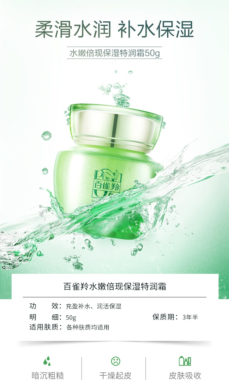 商品名称:PECHOIN/百雀羚水嫩倍现保湿特润霜50g
