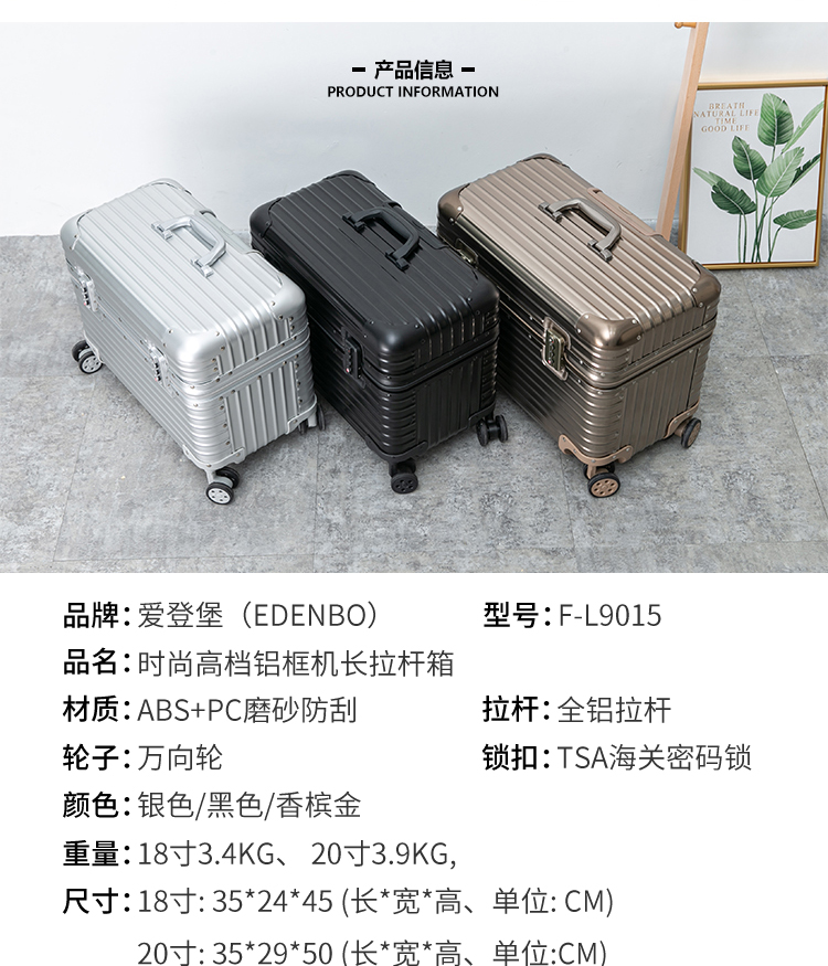 商品名称:Edenbo/爱登堡时尚高档铝框机长拉杆箱F-L9015