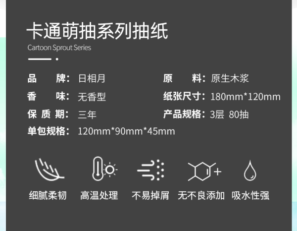 商品名称:日相月原生木浆萌抽系列抽纸3层240张纸抽面巾纸