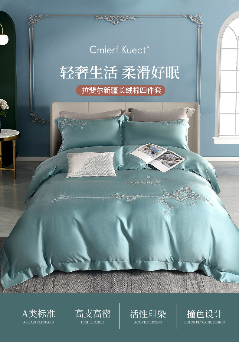 Cmierf Kuect/中国CK拉斐尔新疆长绒棉四件套-冰海蓝200*230cm