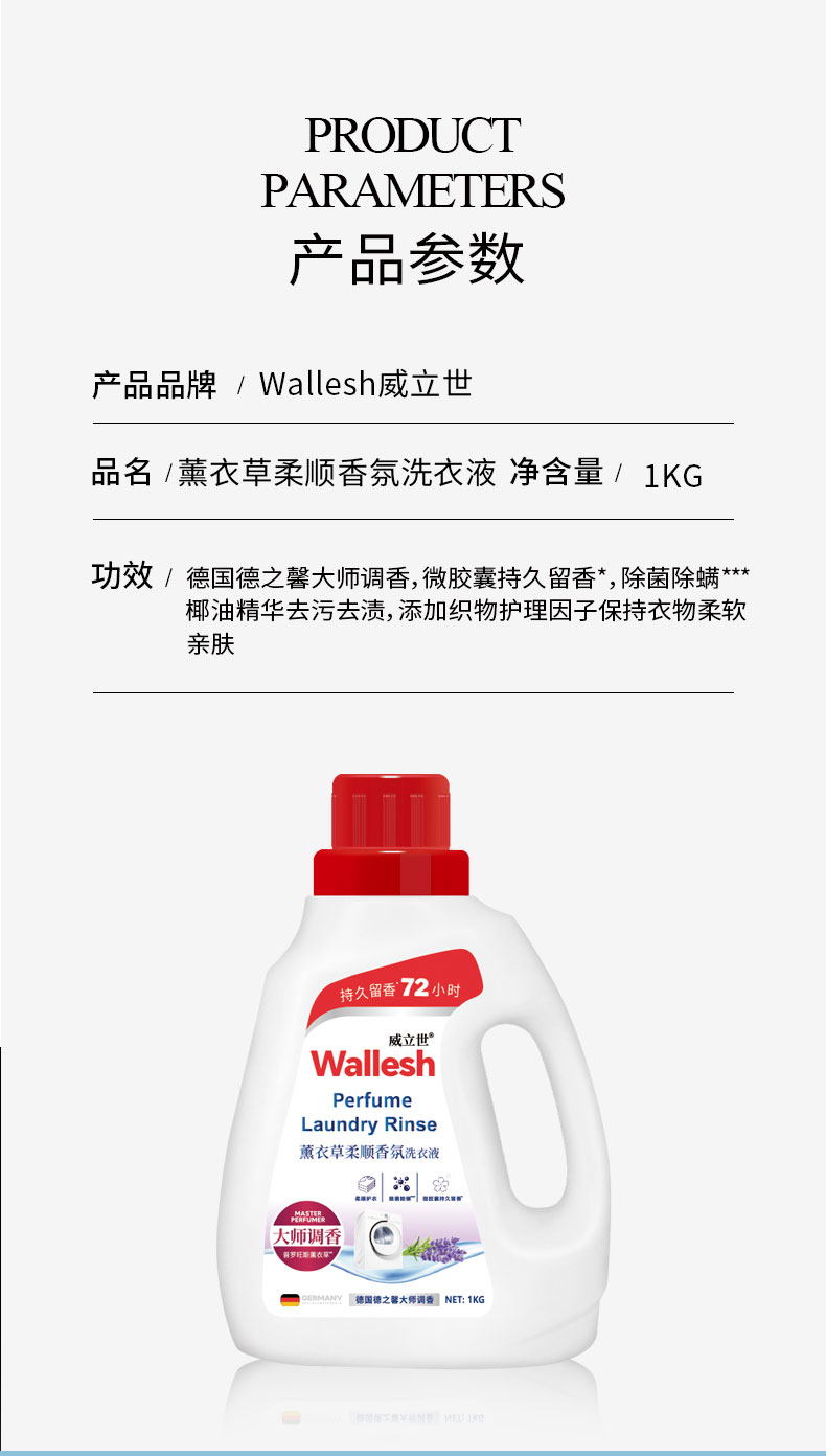商品名称:威立世薰衣草柔顺香氛洗衣液1kg