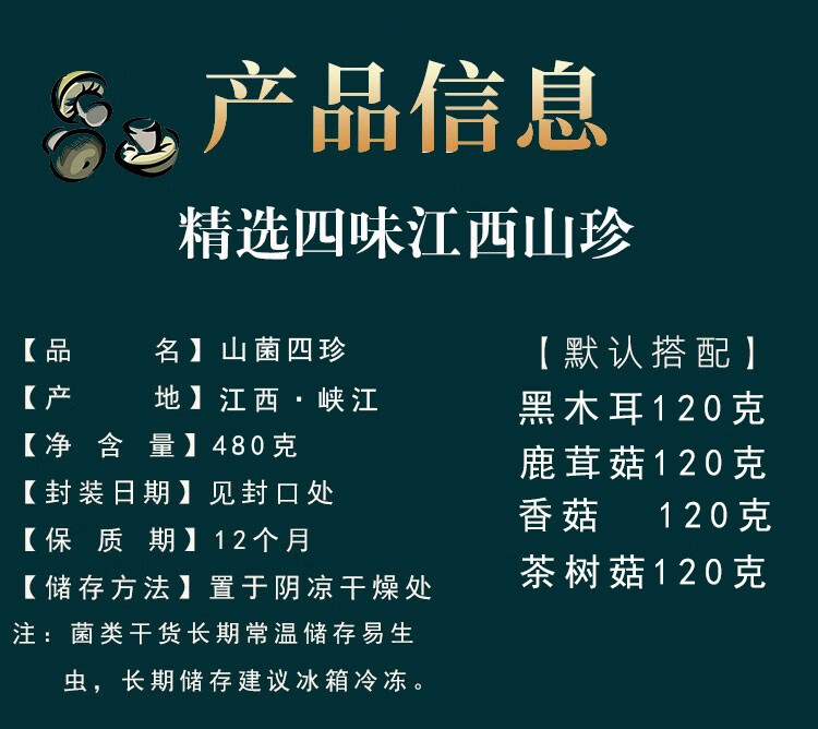商品名称:赣之村山菌四珍礼盒480g