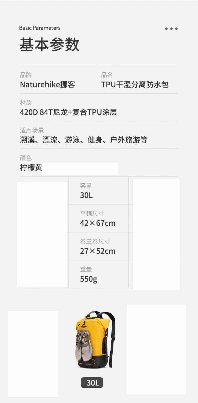 商品名称:Naturehike/挪客30升微光湿分离防水包