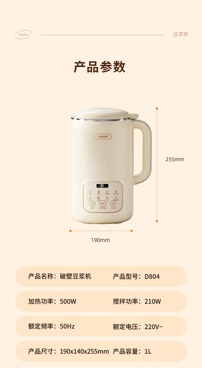 商品名称:NERF/拉尔弗1升破壁豆浆机D804