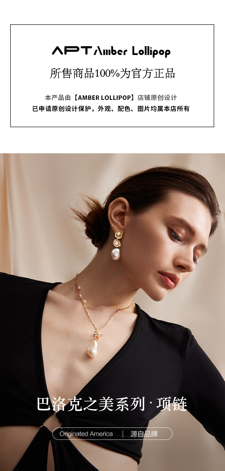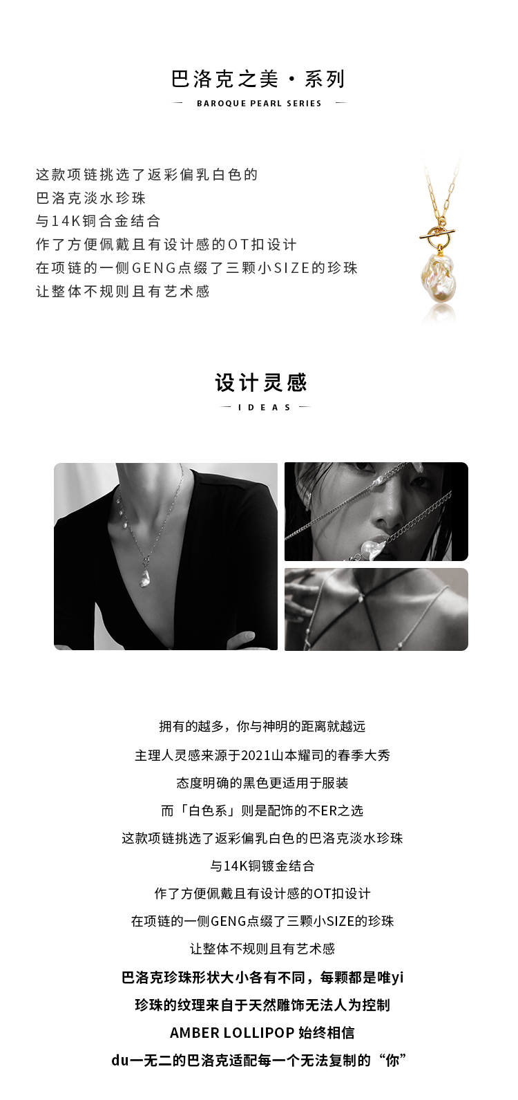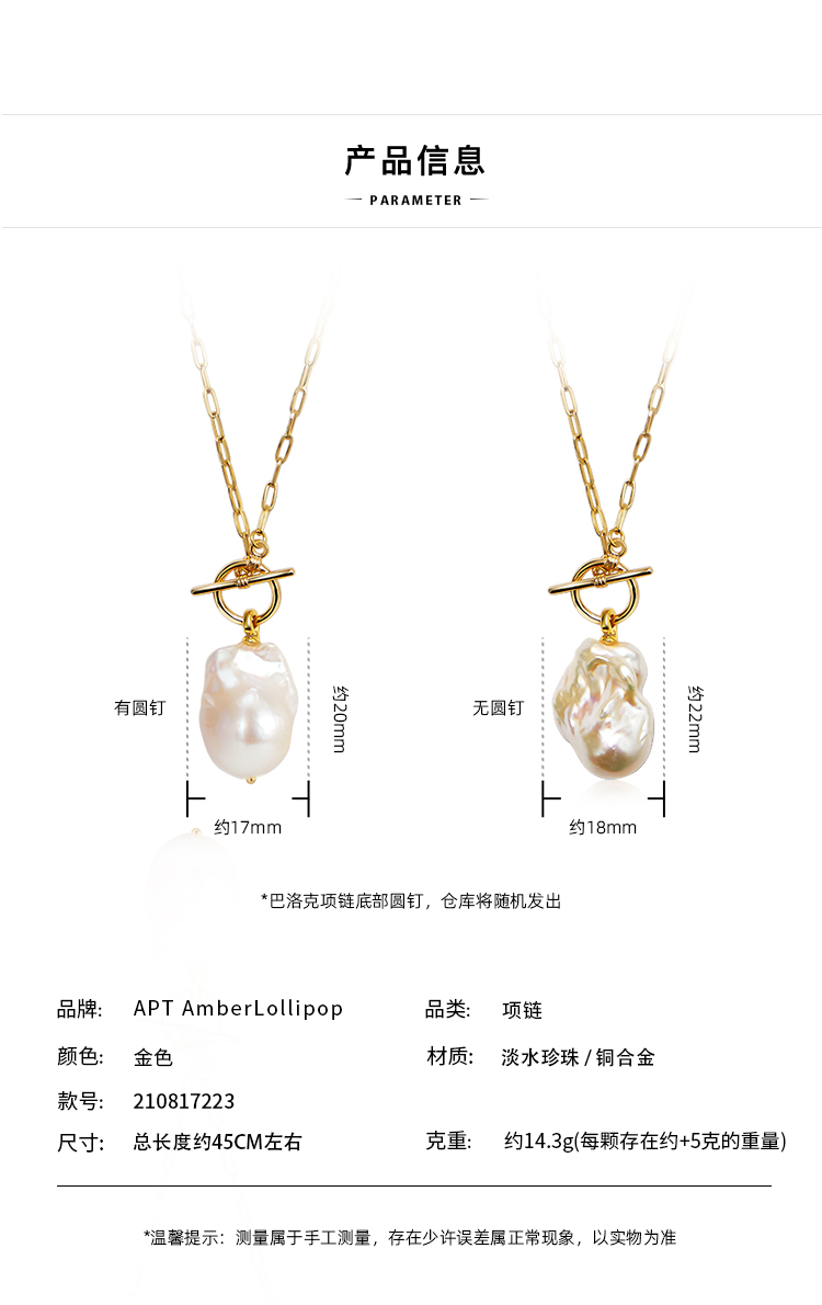 商品名称:安铂洛利巴洛克珍珠项链轻奢小众设计感项链女饰品ABL2304211035