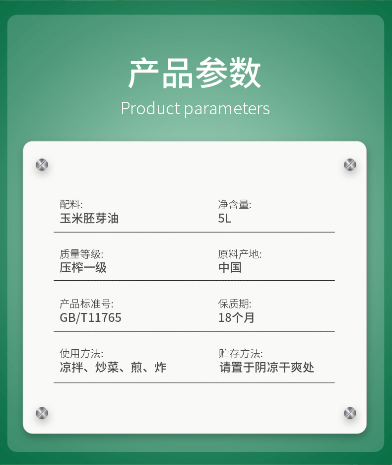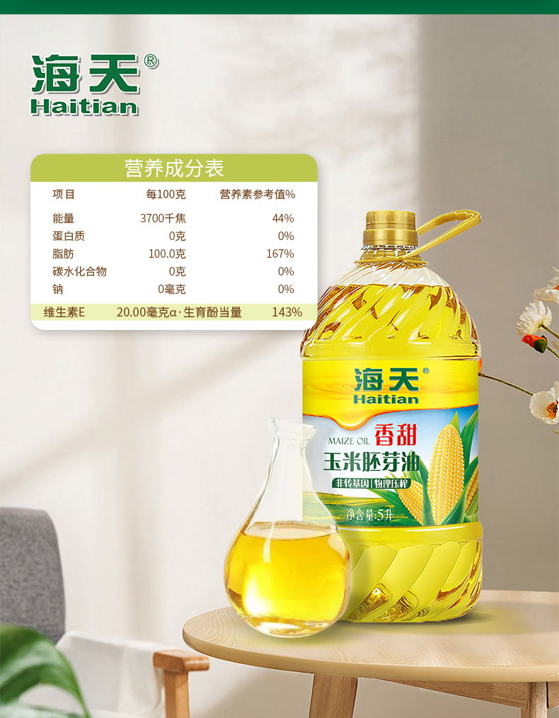 商品名称:海天非转基因香甜玉米胚芽油5L