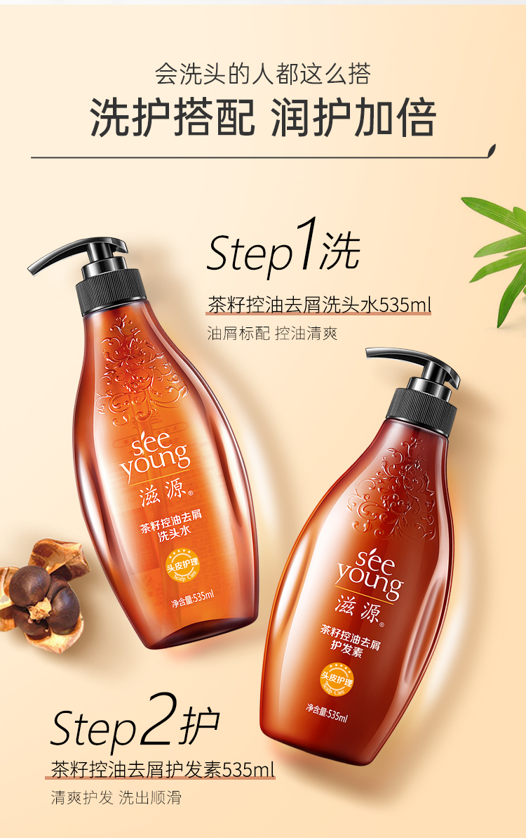 seeyoung/滋源茶籽控油去屑油性洗护组合1070ml