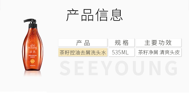 商品名称:seeyoung/滋源茶籽控油去屑油性洗护组合1070ml