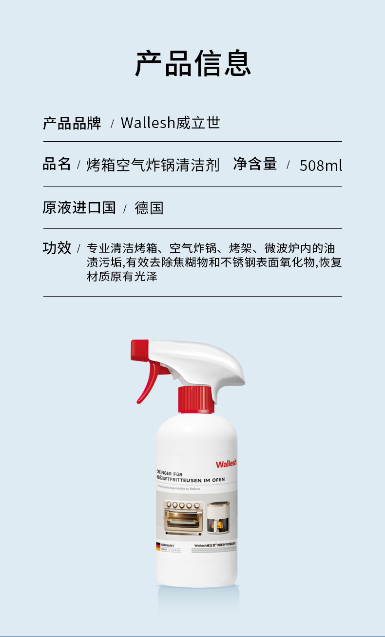 商品名称:威立世烤箱空气炸锅清洁剂508ml