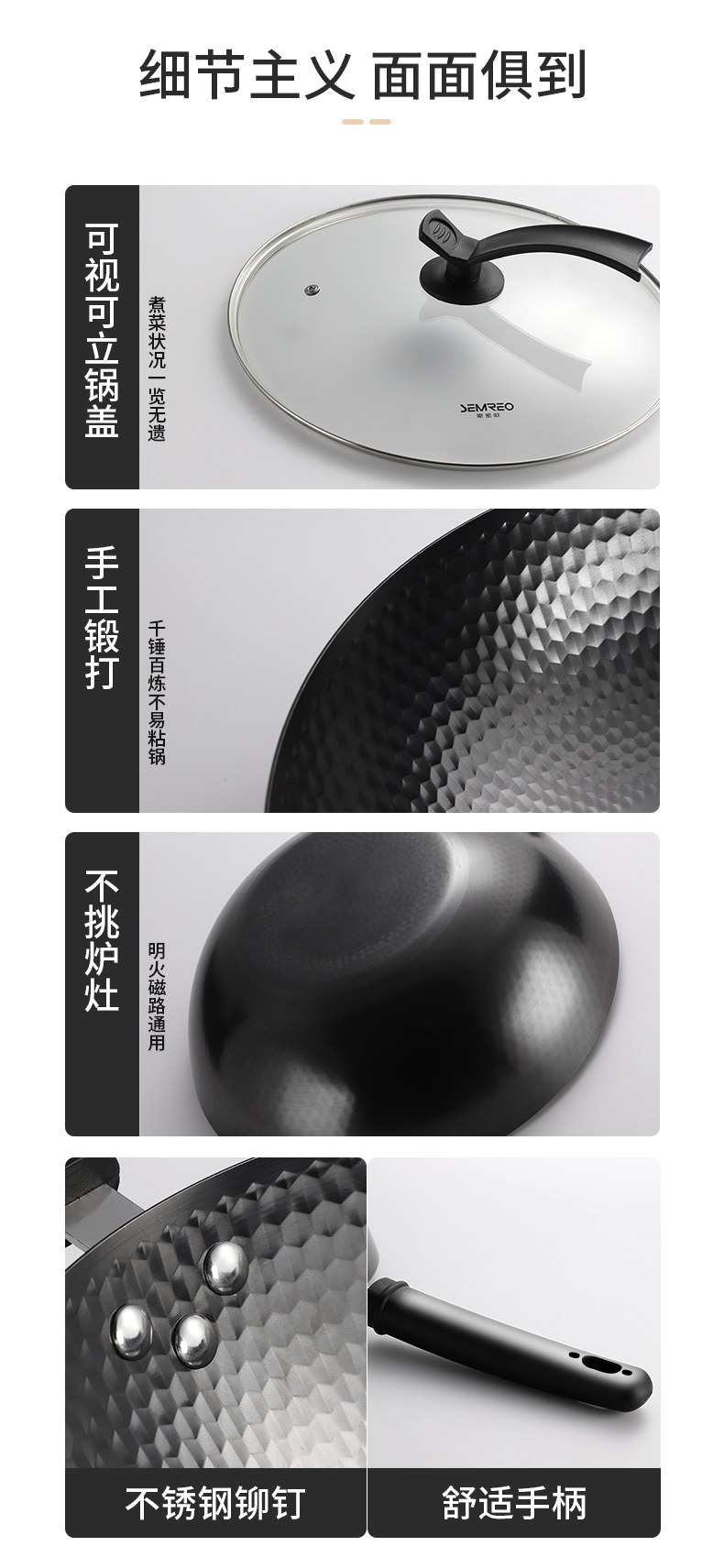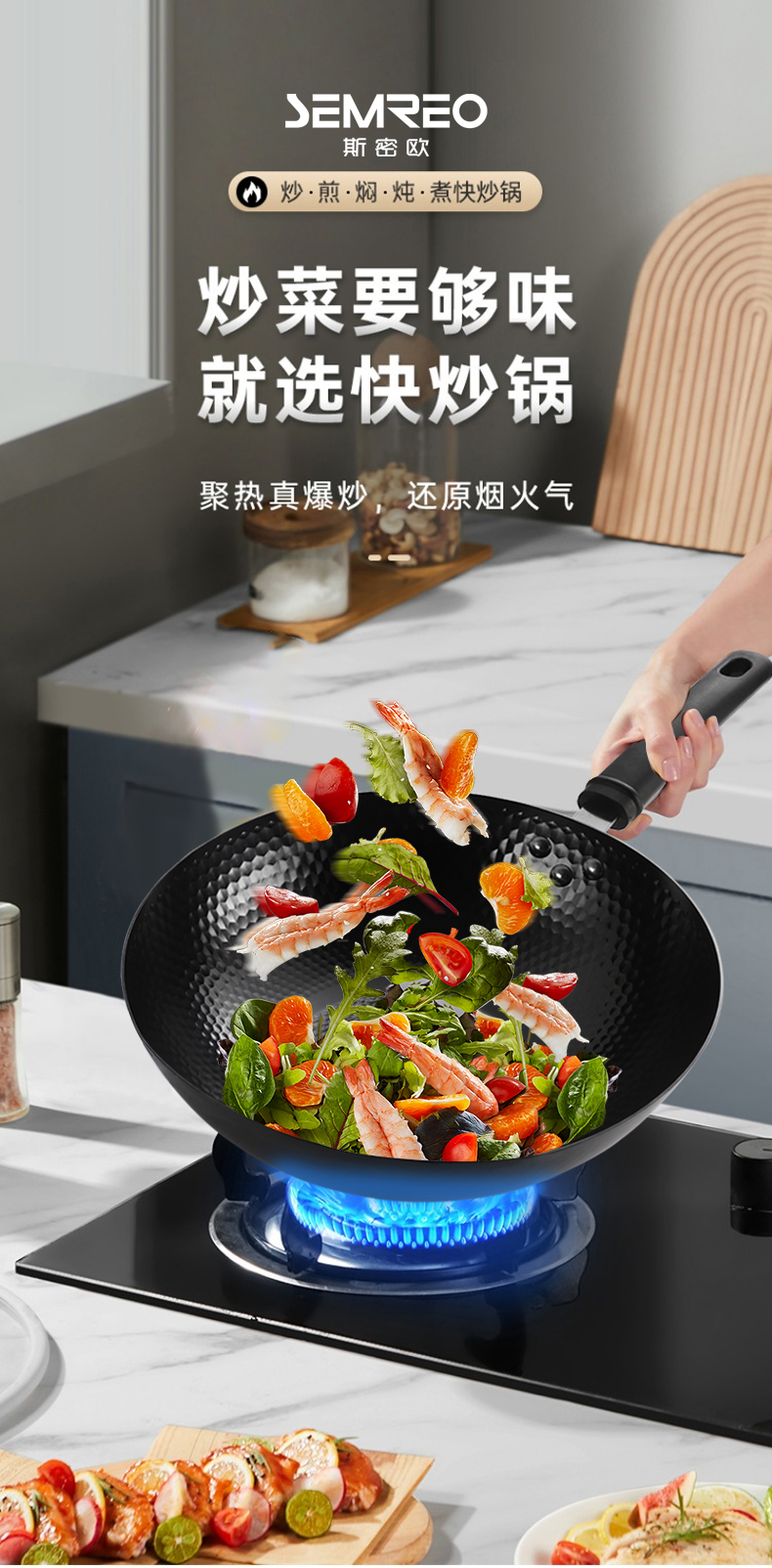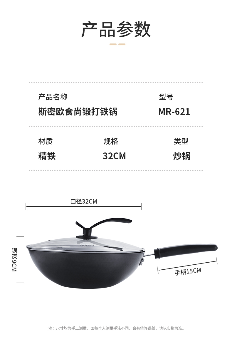 商品名称:【顺丰/德邦配送】SEMREO/斯密欧32cm食尚锻打纯铁炒锅MR-621