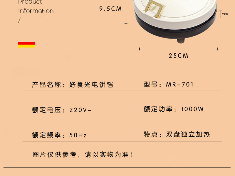 商品名称:【顺丰/德邦配送】SEMREO/斯密欧25cm好食光电饼铛MR-701