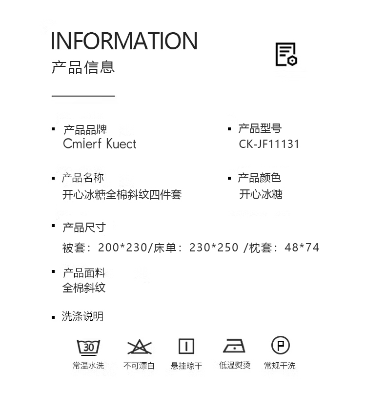 商品名称:Cmierf Kuect/中国CK开心冰糖全棉斜纹四件套200*230cm