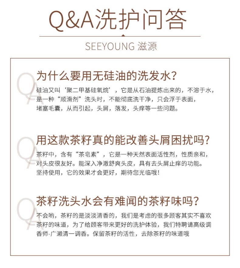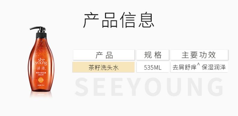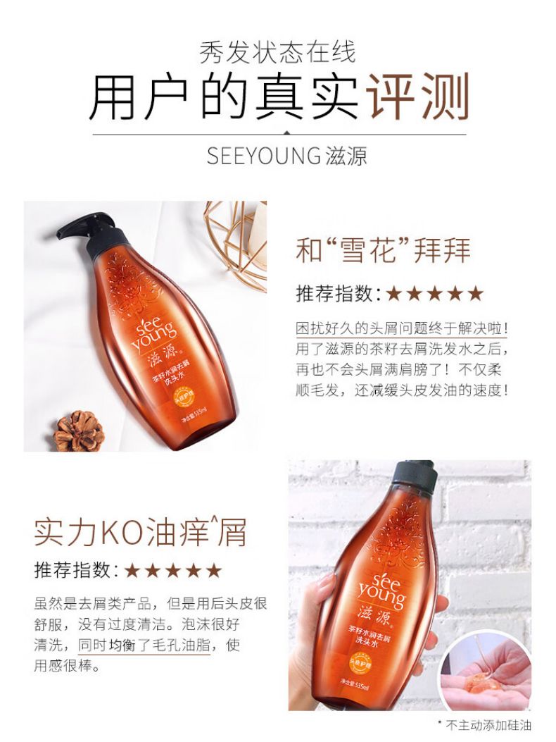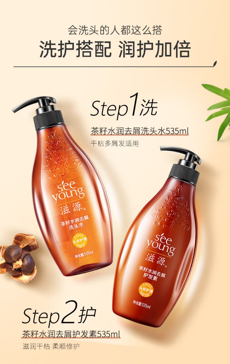 商品名称:seeyoung/滋源茶籽水润去屑中干性洗护组合1070ml