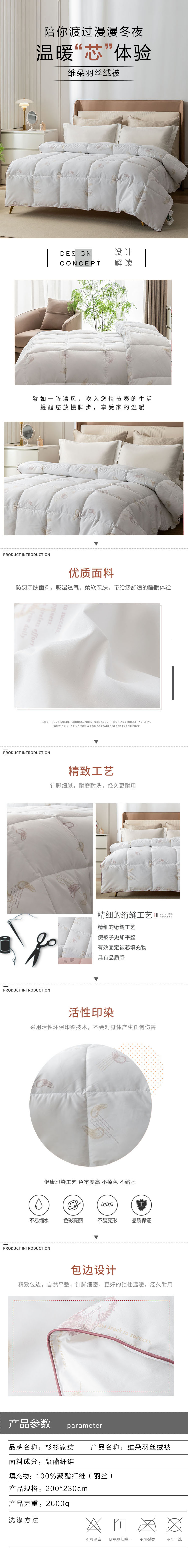 商品名称:FIRS/杉杉家纺维朵羽丝绒被200*230cm 2600g