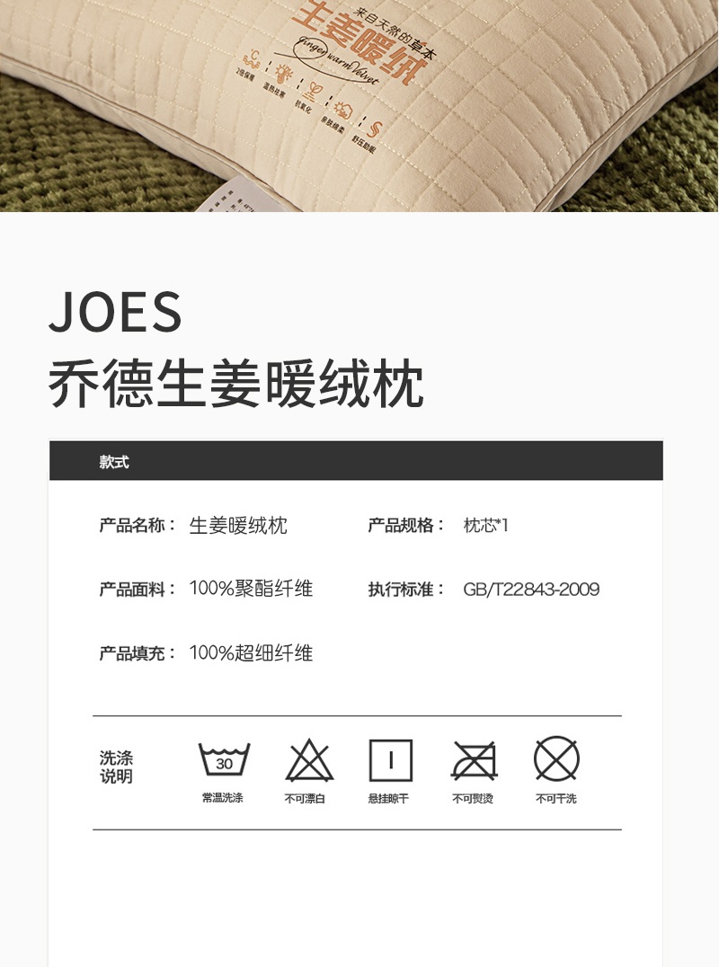 商品名称:JOES HOME/乔德家纺生姜暖绒枕一只