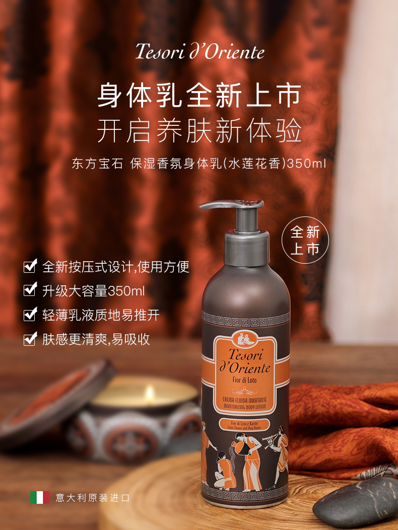 【顺丰配送】Tesori Doriente/东方宝石保湿香氛身体乳-水莲花香味350ml
