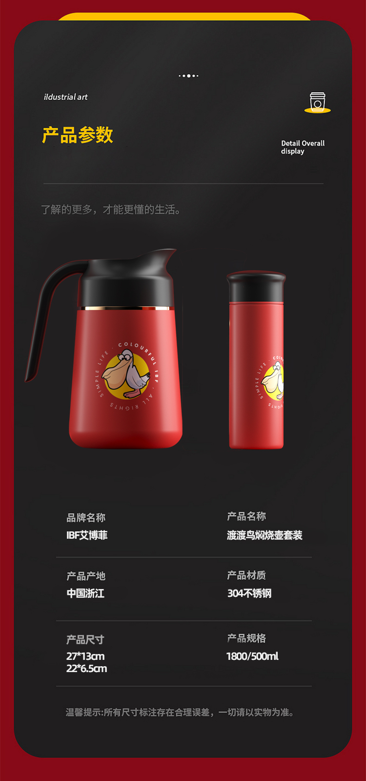 商品名称:IBF/艾博菲渡渡鸟保温杯焖烧壶组合套装IBF2213BH