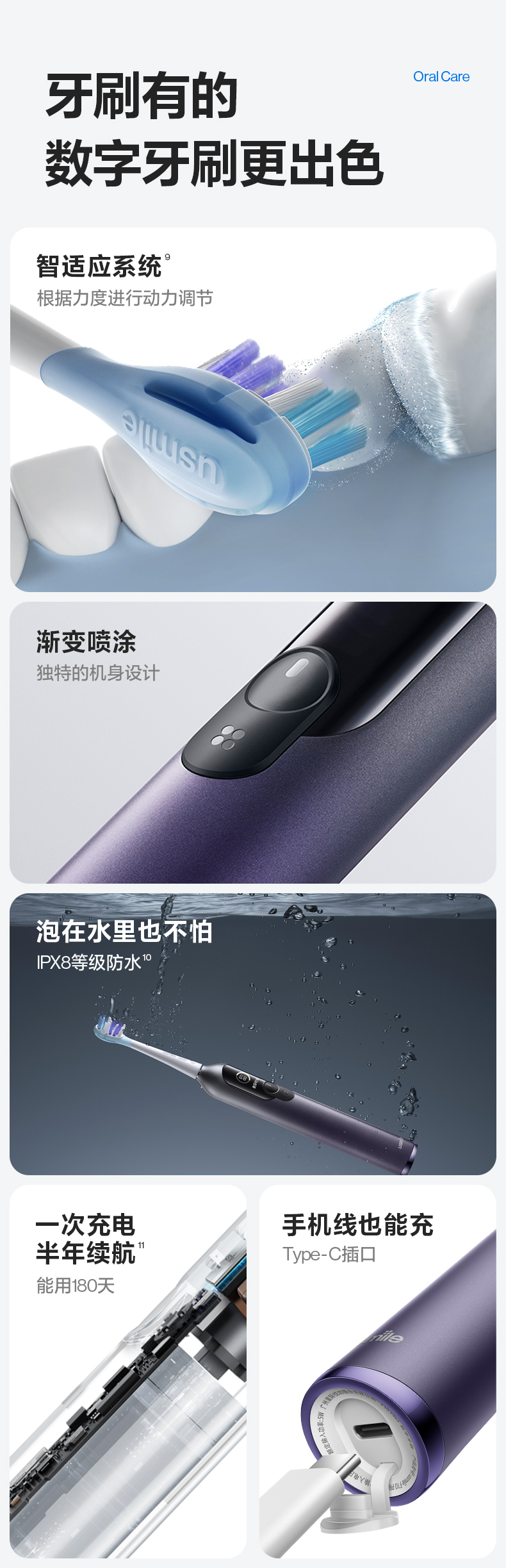 usmile/笑容加成人数字电动牙刷F10 PRO