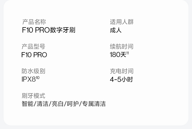 商品名称:usmile/笑容加成人数字电动牙刷F10 PRO
