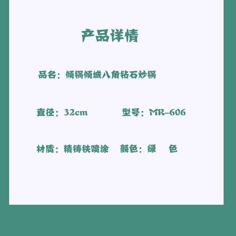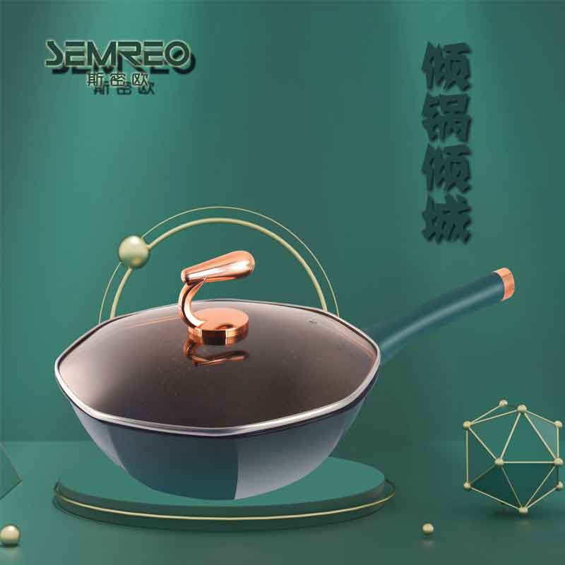 商品名称:【顺丰/德邦配送】SEMREO/斯密欧32cm倾锅倾城八角钻石炒锅-绿色MR-606