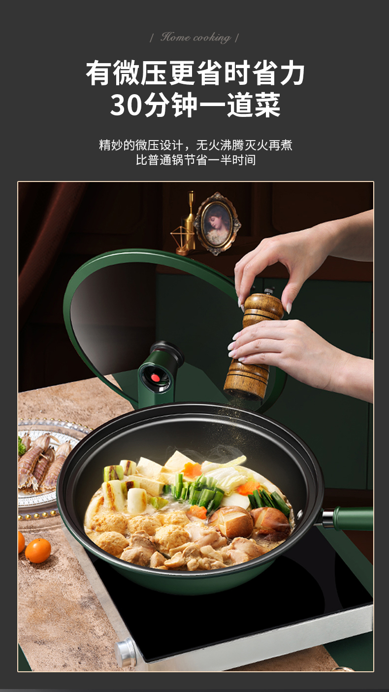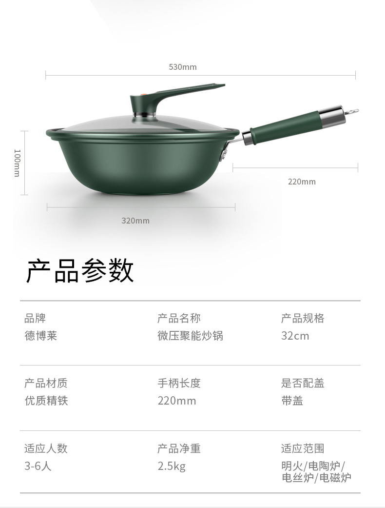 商品名称:德博莱32cm微压聚能炒锅WYG-001