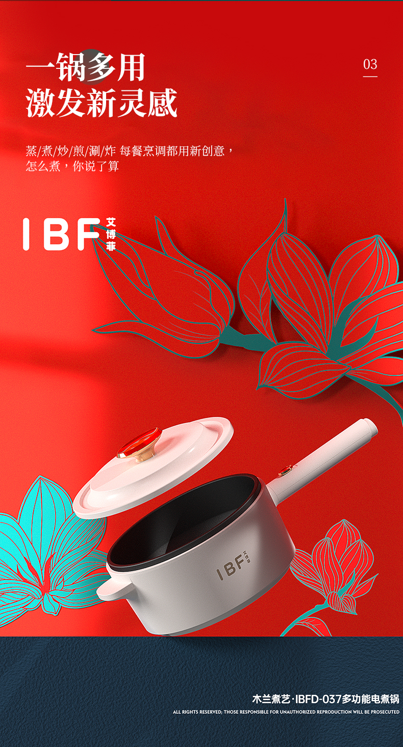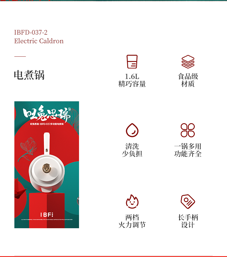 商品名称:IBF/艾博菲1.6升旺兔思瑞多功能电煮锅IBFD-037-2