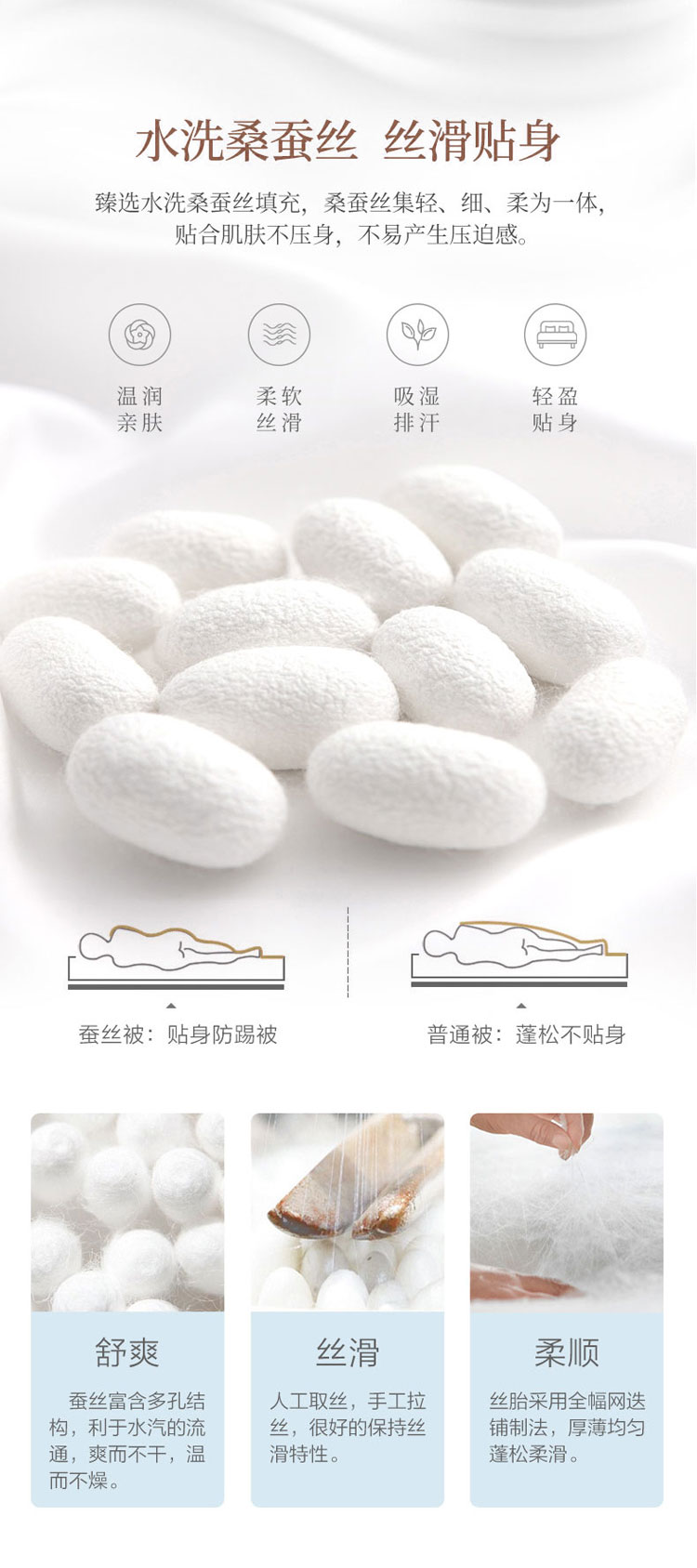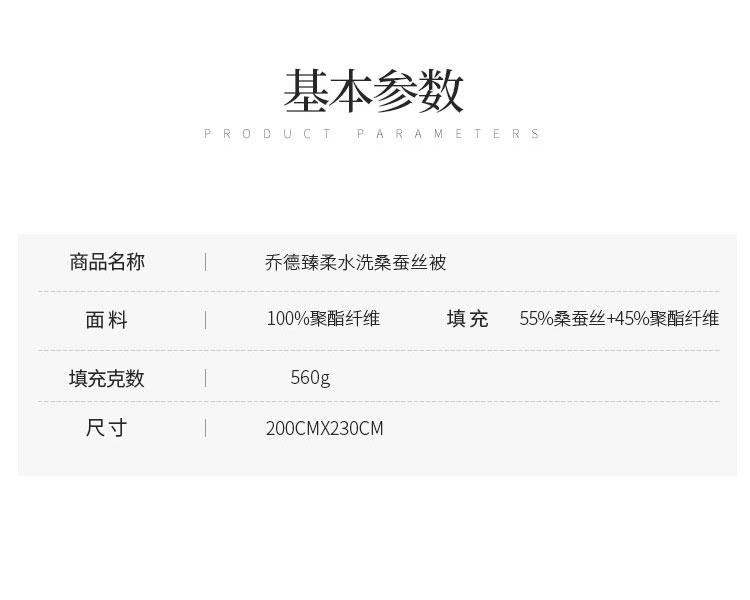 商品名称:JOES HOME/乔德家纺臻柔水洗桑蚕丝被200*230cm 560g