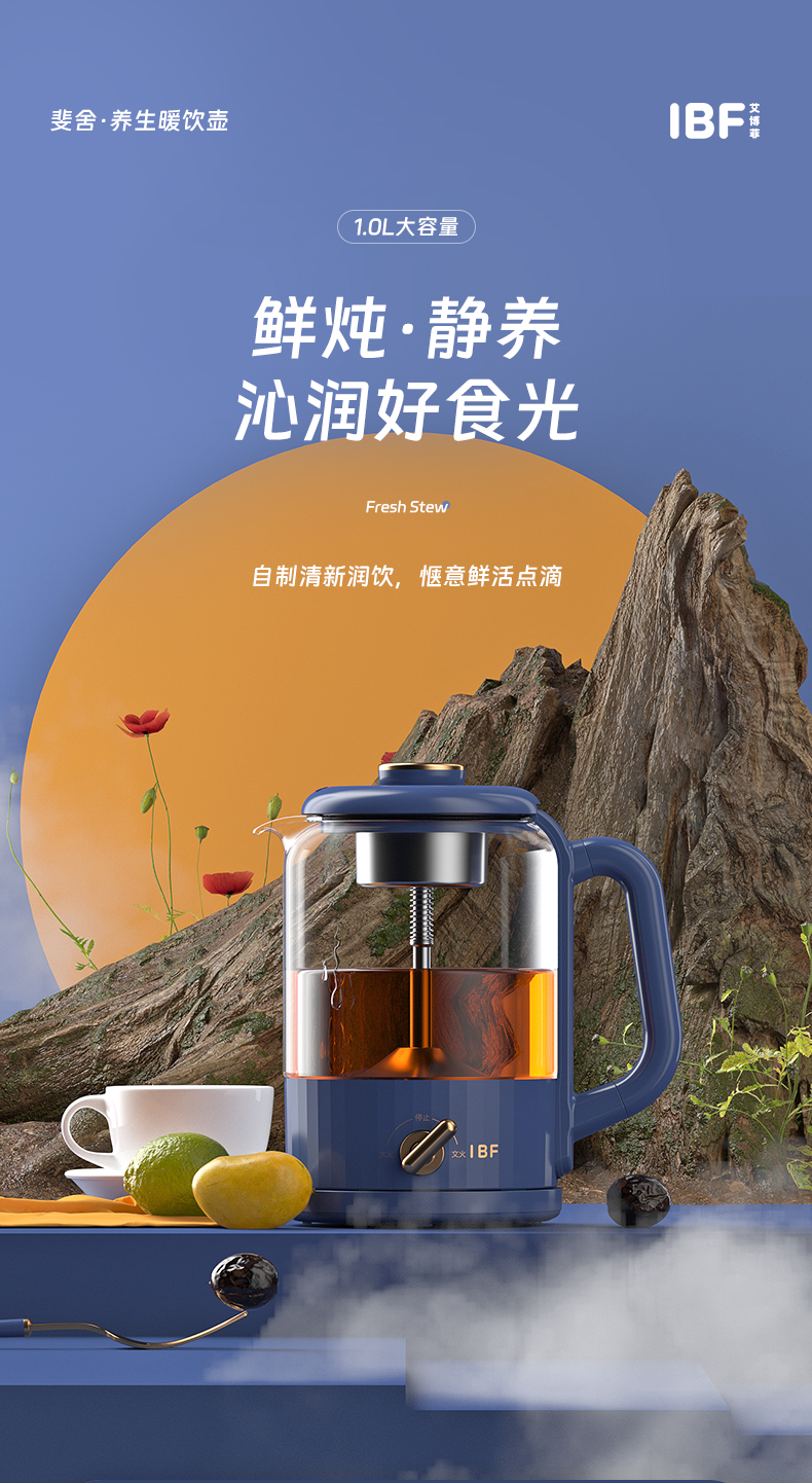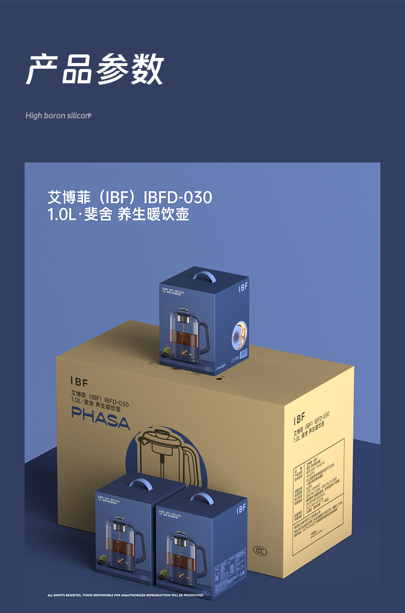 商品名称:IBF/艾博菲1升斐舍养生暖饮壶IBFD-030