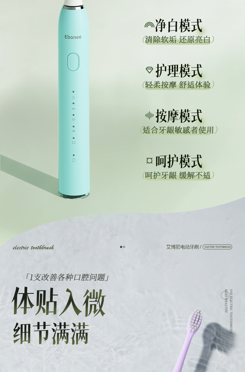 商品名称:Ebonee/艾博尼成人电动牙刷K1