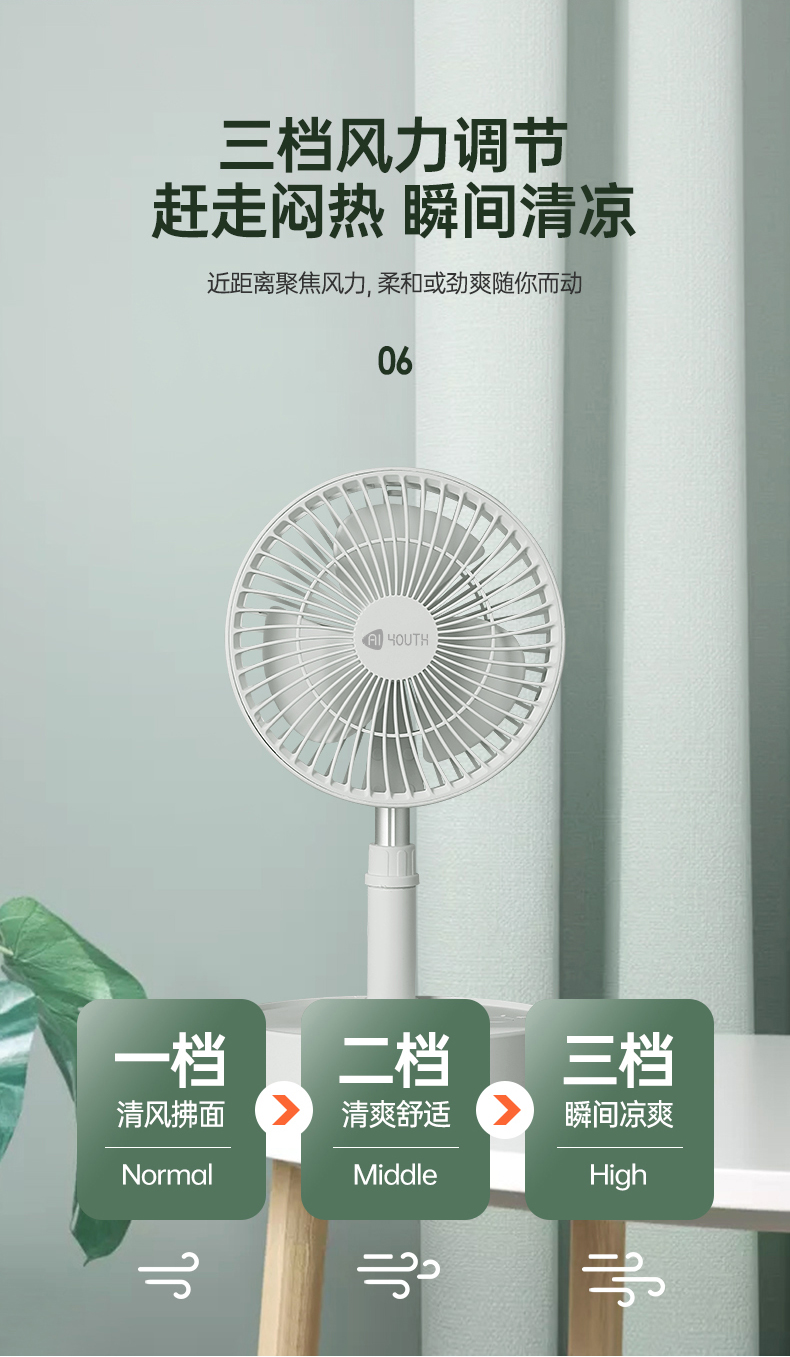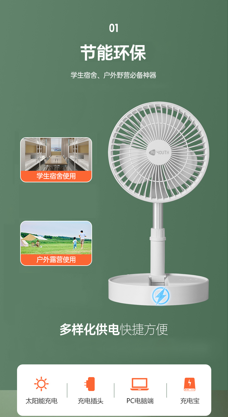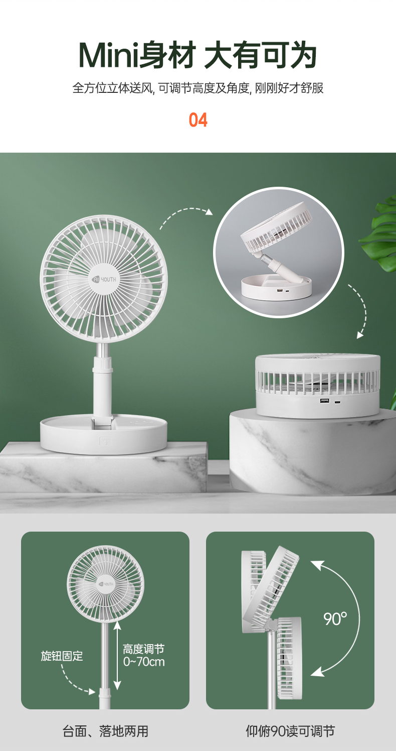 AIYOUTH/艾青春收纳式折叠风扇IQC-F7200B