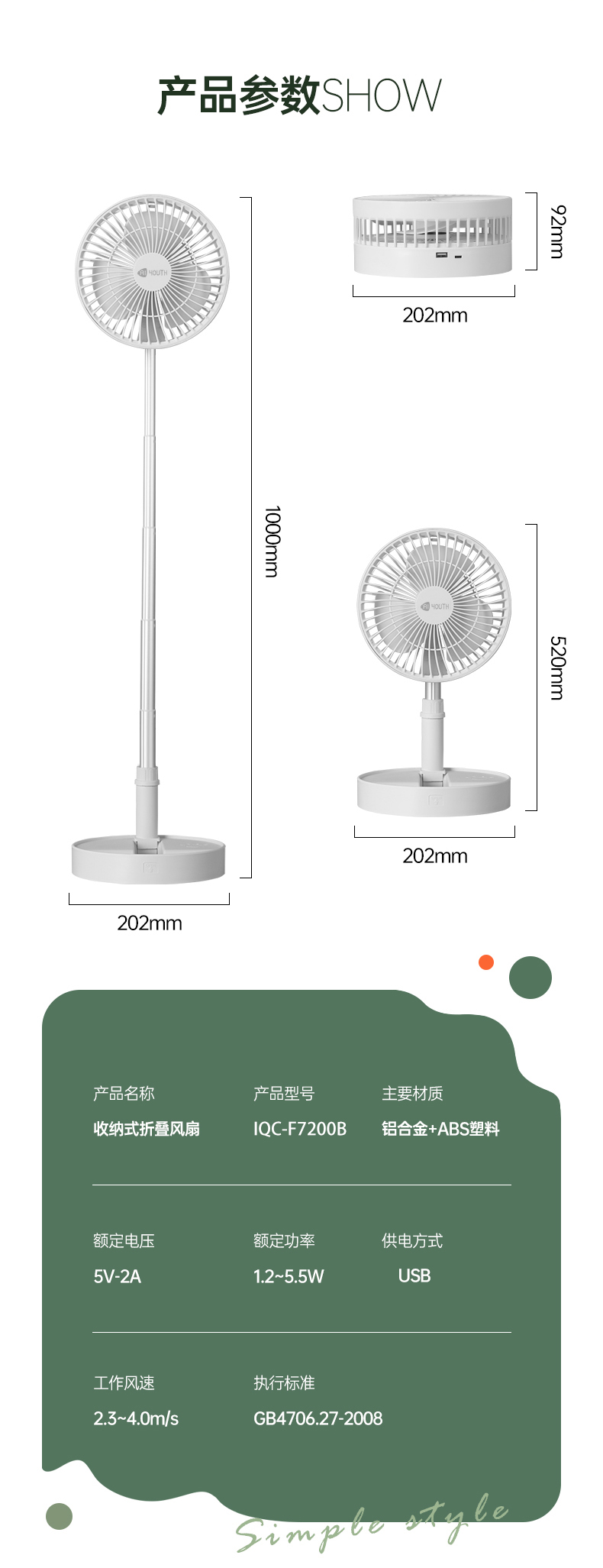 商品名称:AIYOUTH/艾青春收纳式折叠风扇IQC-F7200B