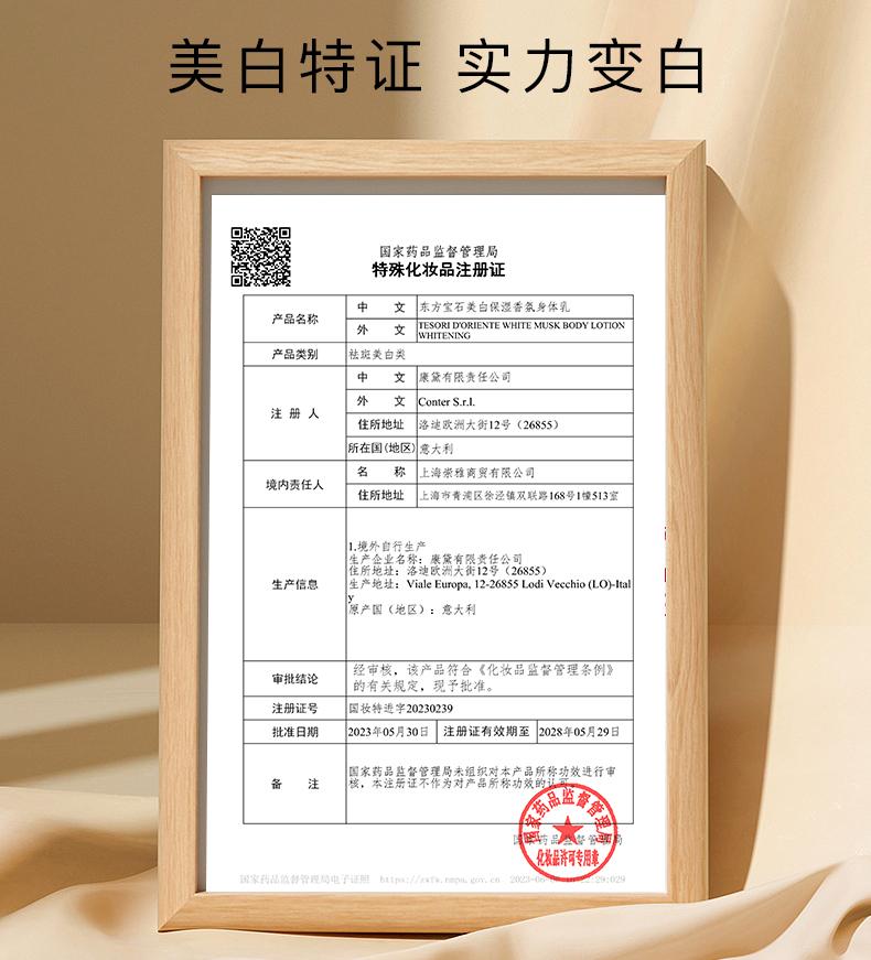 商品名称:Tesori Doriente/东方宝石美白保湿香氛身体乳-白麝香味350ml