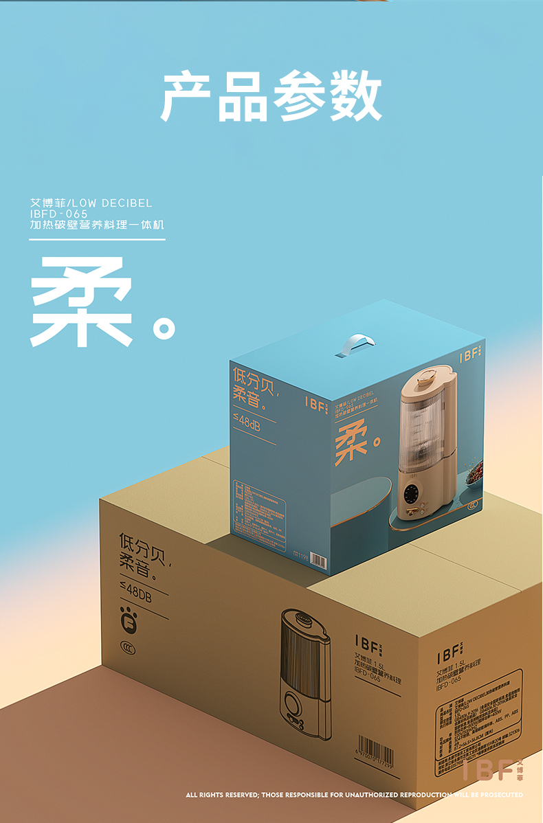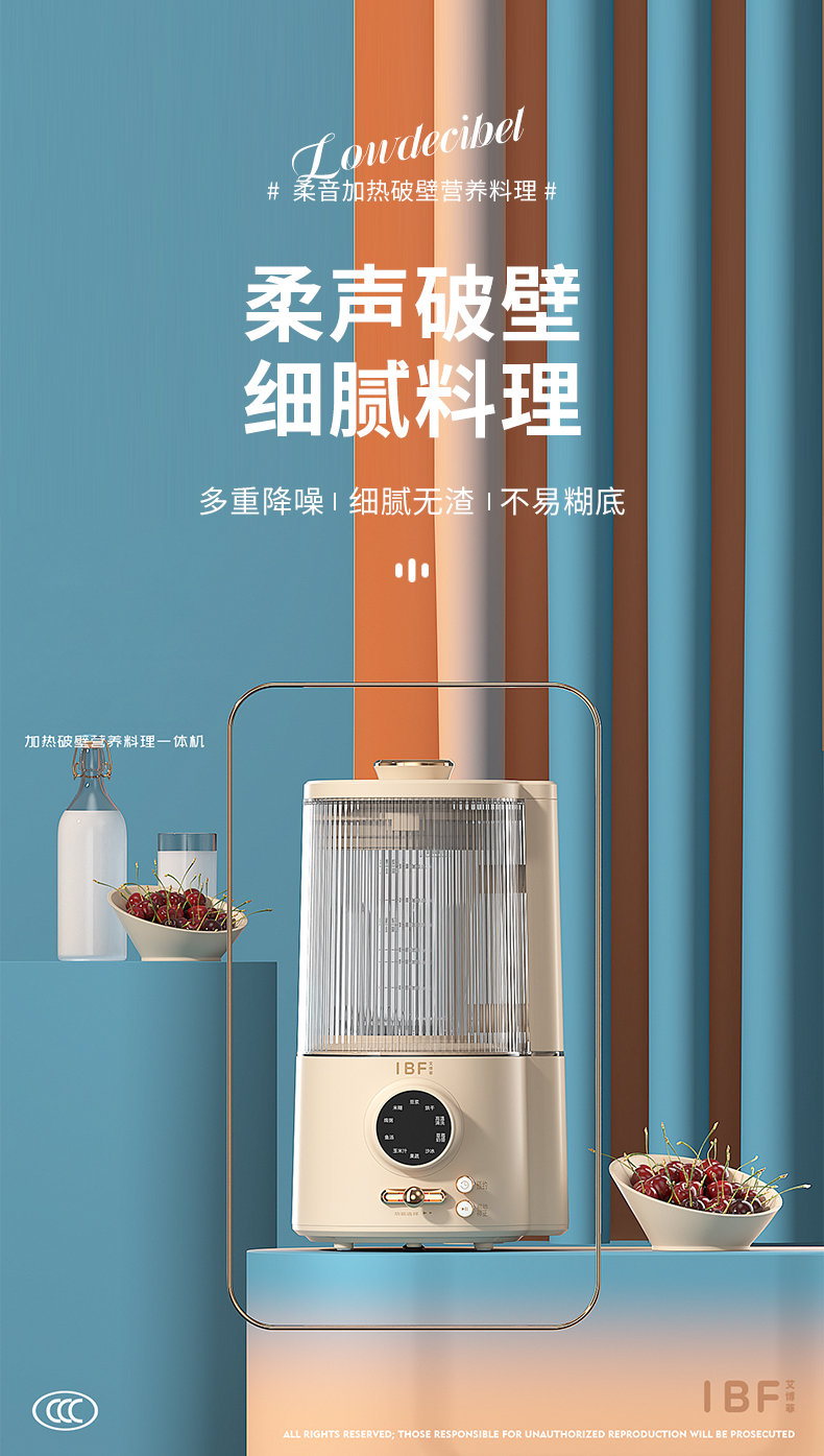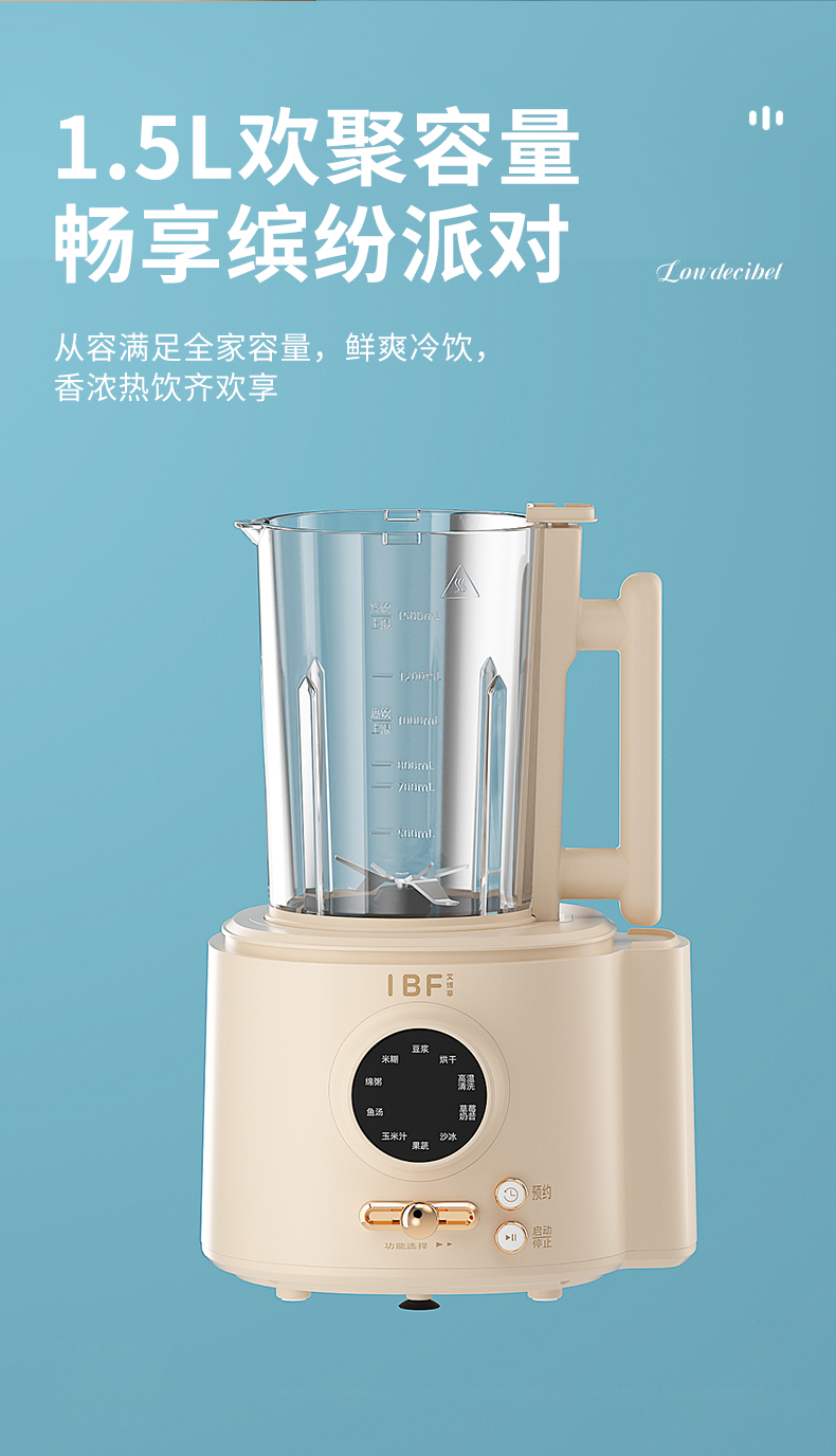 商品名称:IBF/艾博菲1.5升柔音LOWDECIBEL加热破壁营养料理机IBFD-028-1