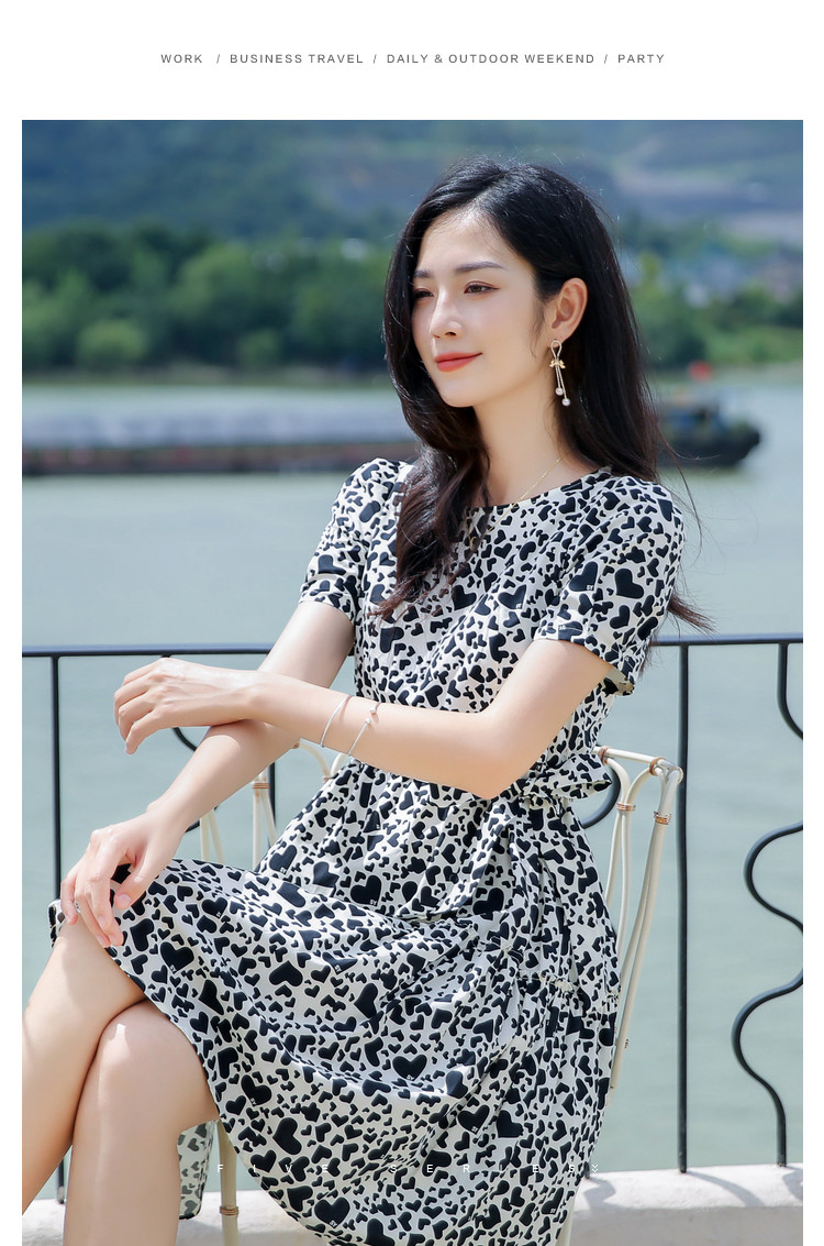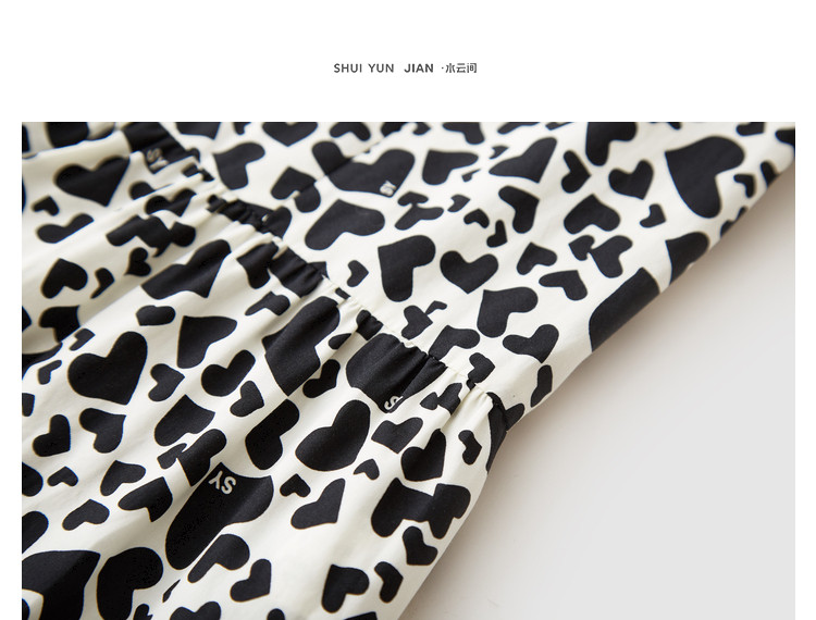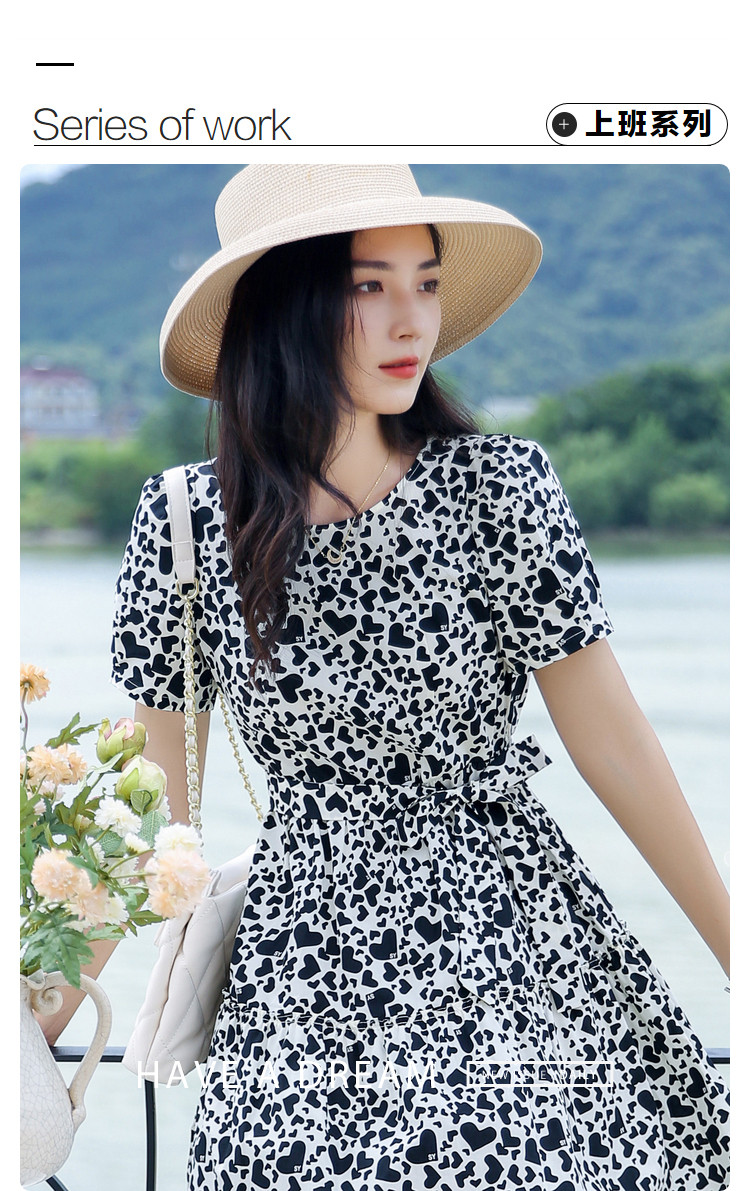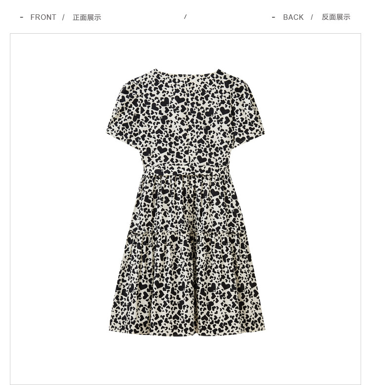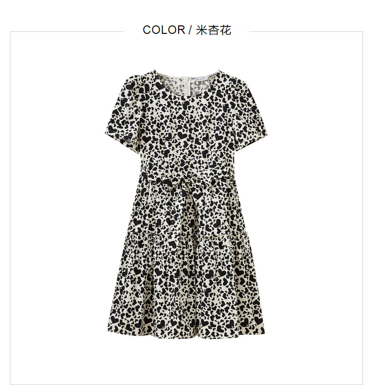 商品名称:爱心印花连衣裙女独特设计感收腰A字裙子减龄气质短袖圆领连衣裙 106691