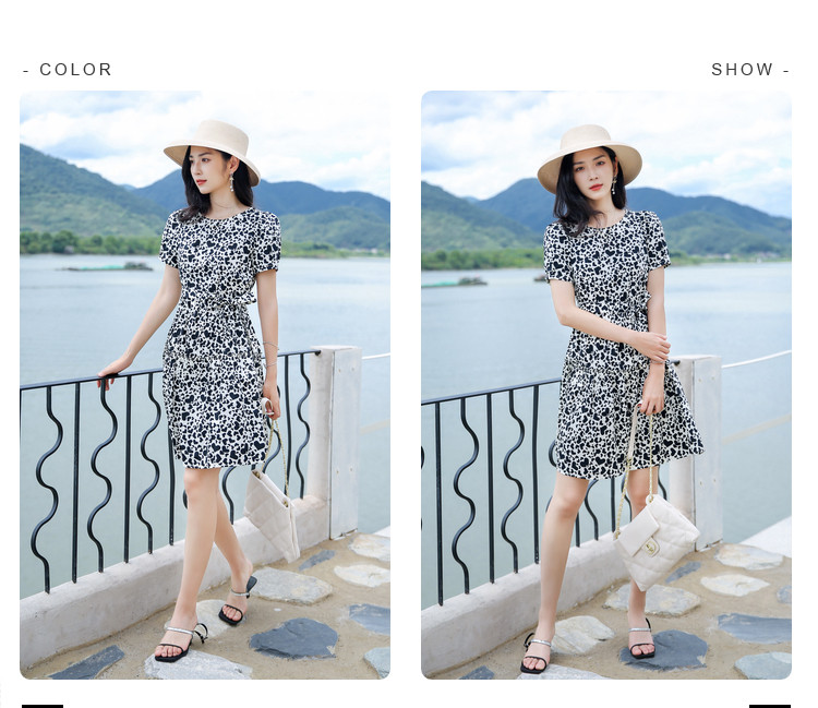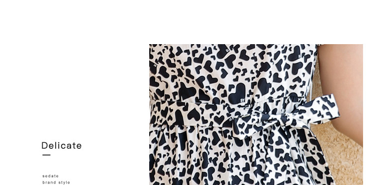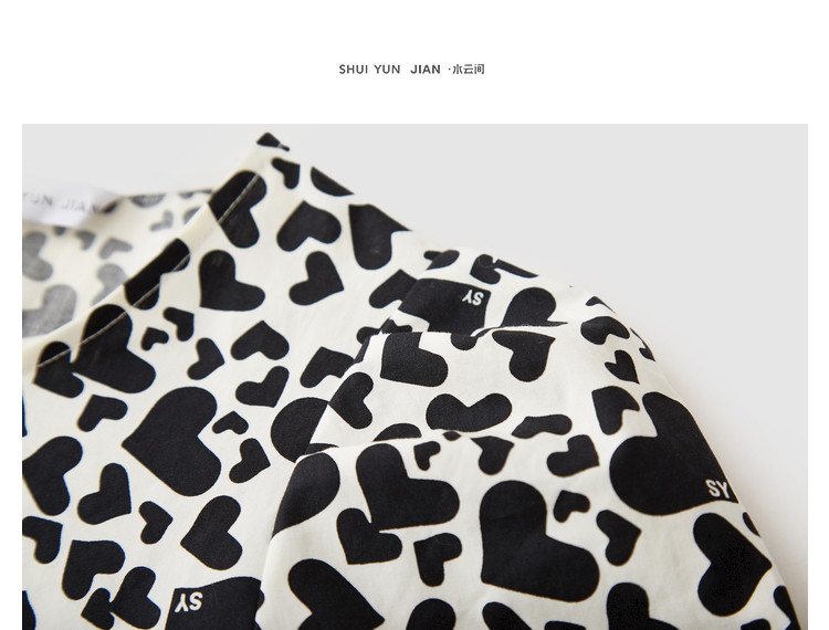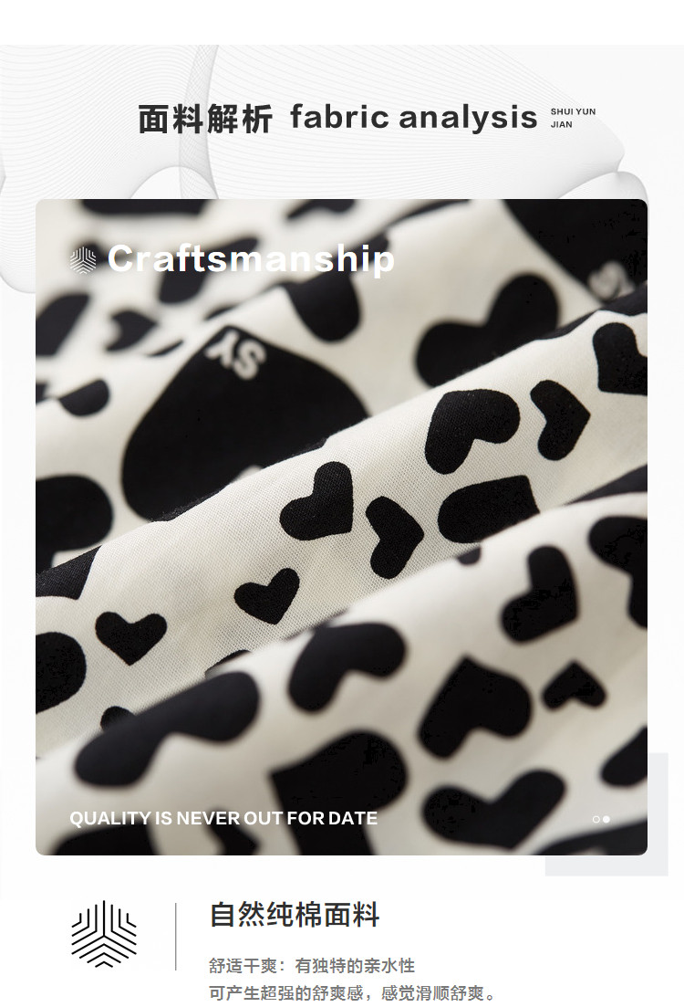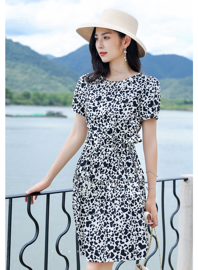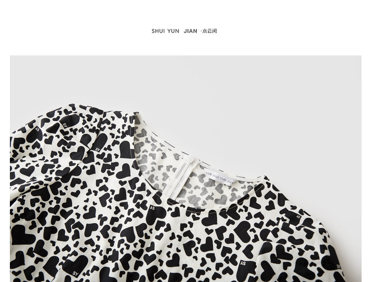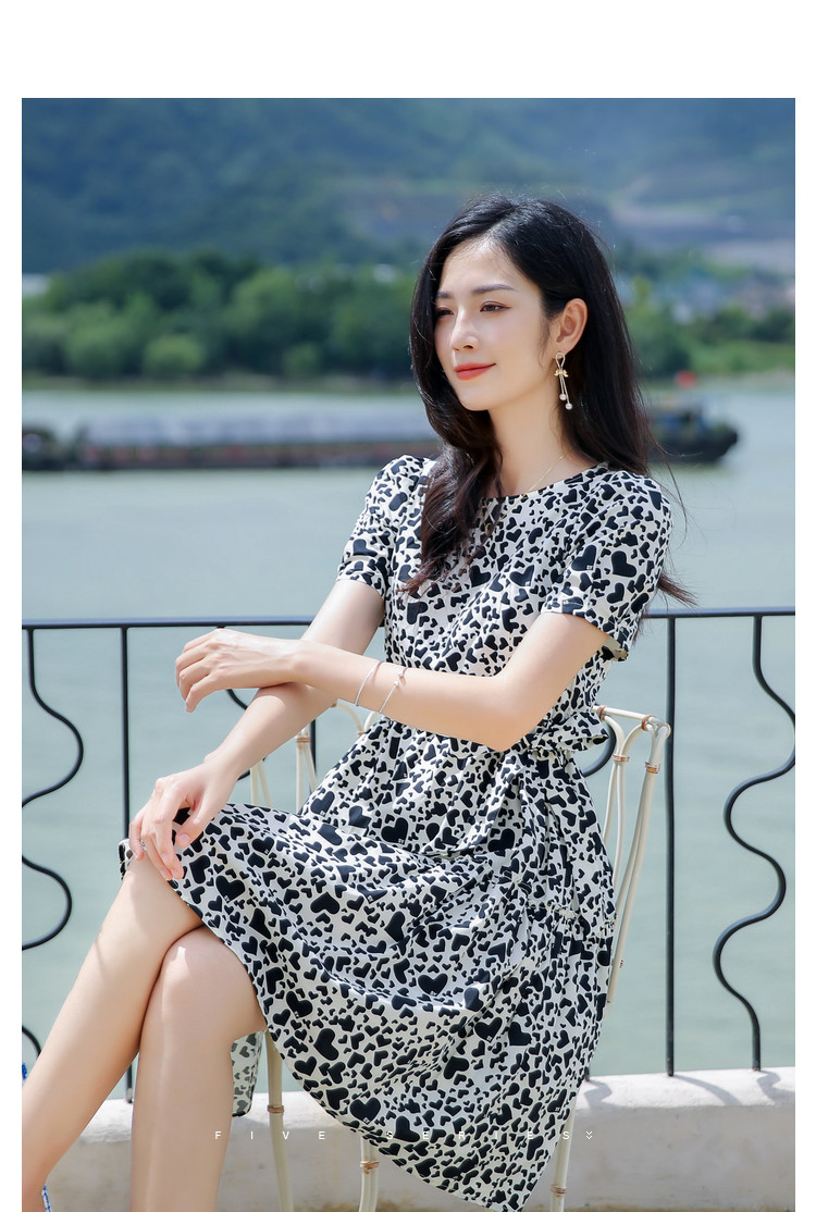 商品名称:爱心印花连衣裙女独特设计感收腰A字裙子减龄气质短袖圆领连衣裙 106691