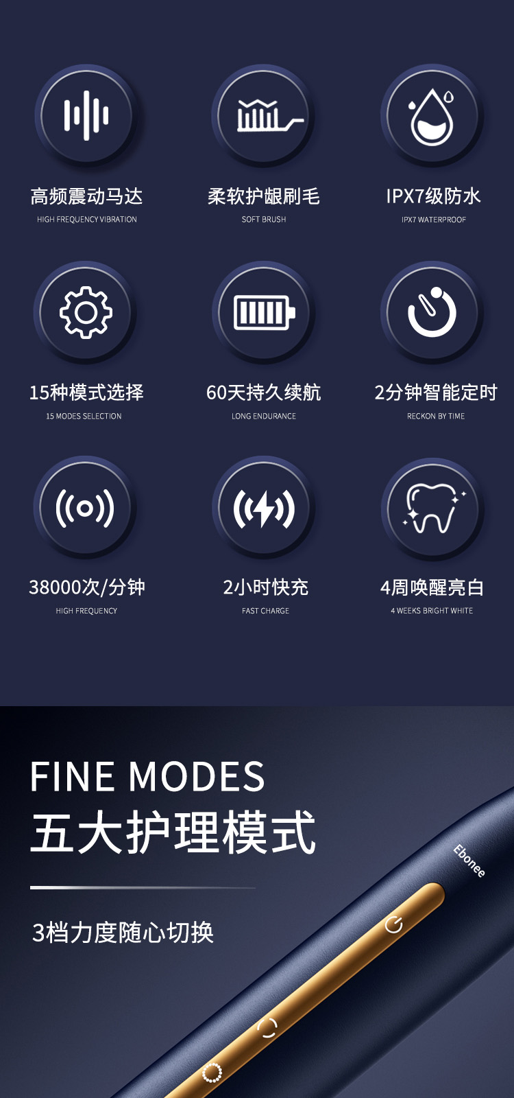 商品名称:Ebonee/艾博尼成人电动牙刷F1