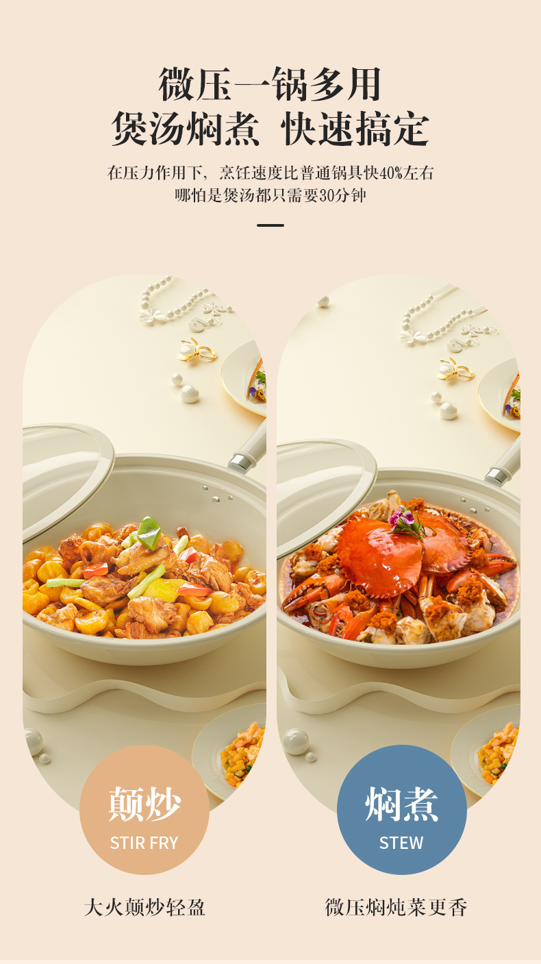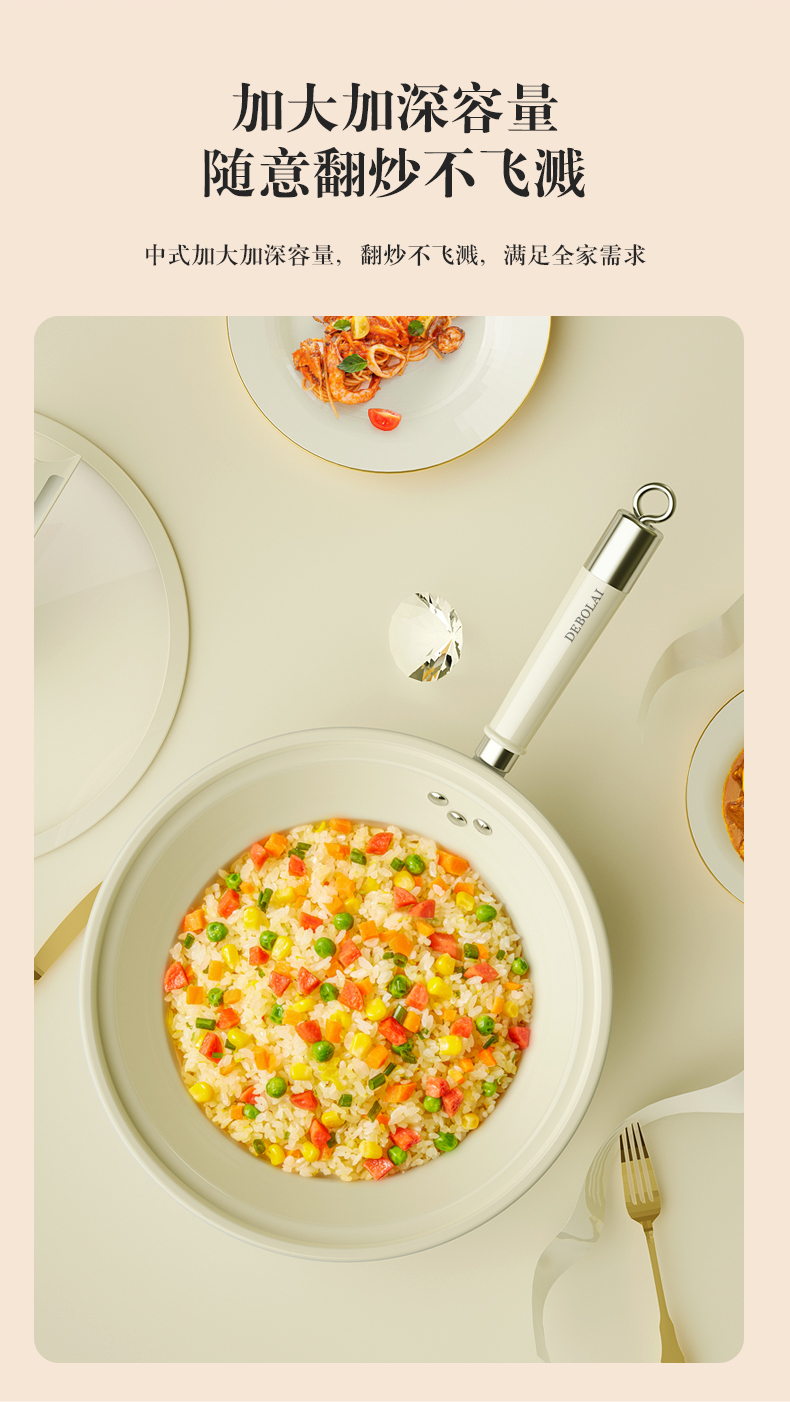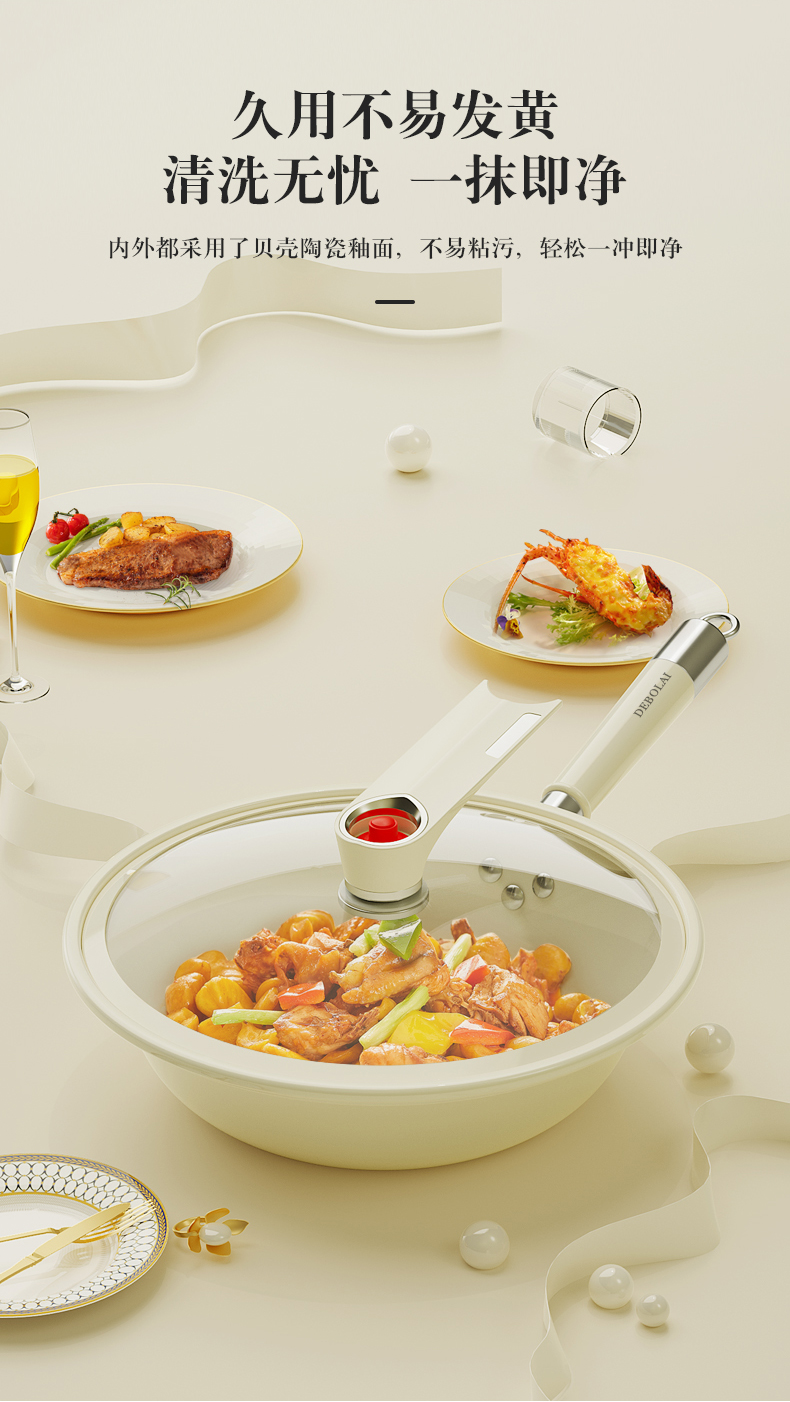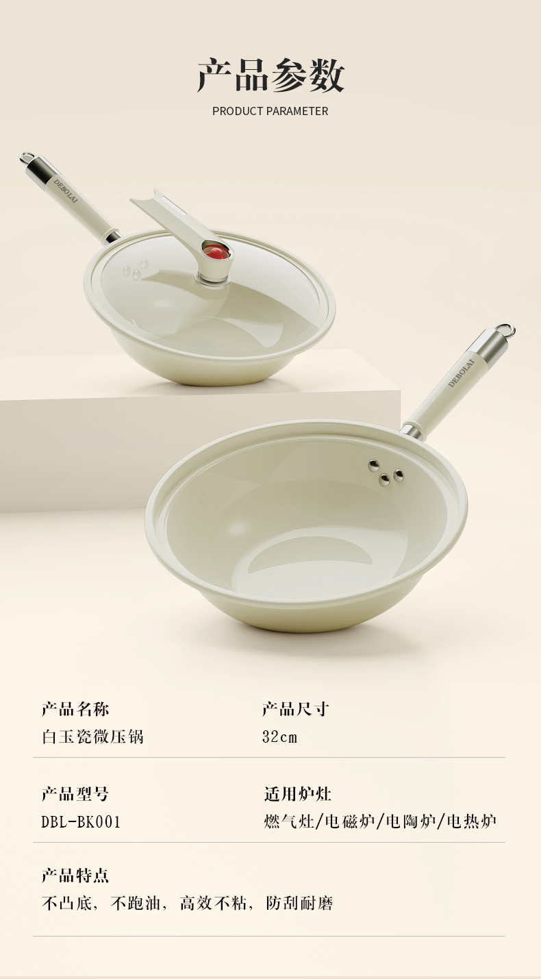 商品名称:德博莱32cm白玉瓷微压炒锅DBL-BK001