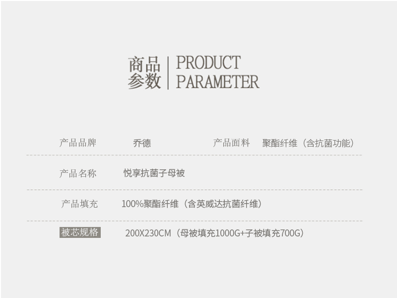 商品名称:JOES HOME/乔德家纺悦享全效抗菌二合一子母被200*230cm 1000g+700g
