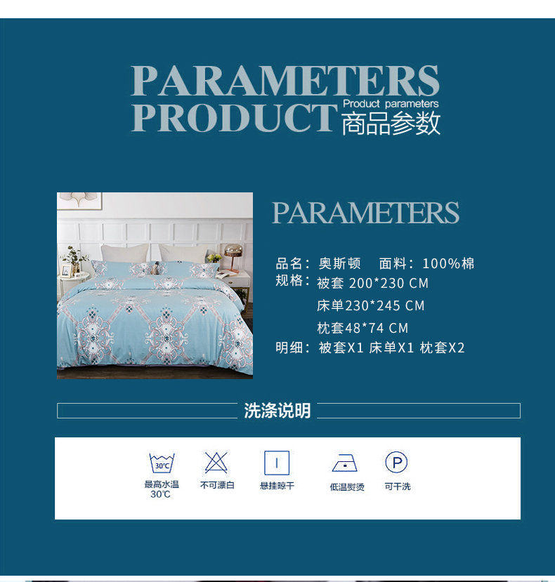 商品名称:JOES HOME/乔德家纺全棉印花床品四件套-奥斯顿200*230cm